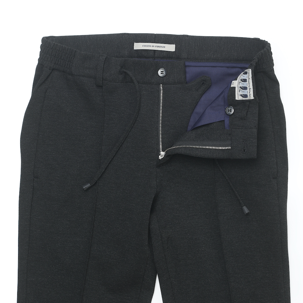 ・シルエットはスリムテーパード。ワタリ、膝、裾にかけてなだらかにかつ確実にテーパードしていくシルエットは「giabsarchivio(ジャブスアルキヴィオ)」ならでは。モードかつスポーティ。