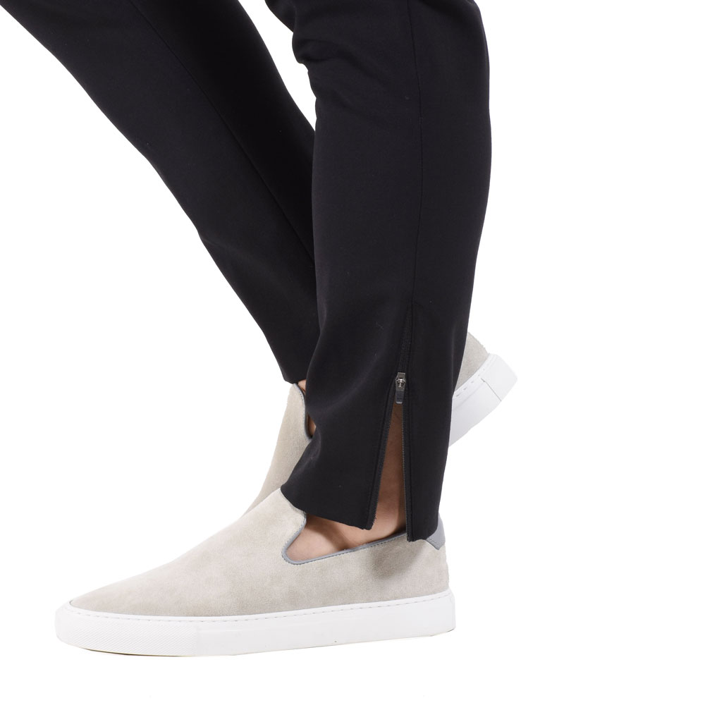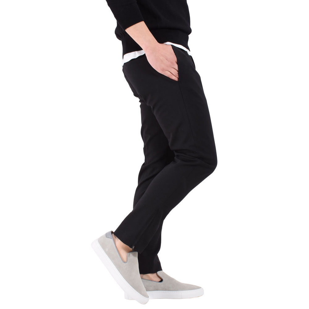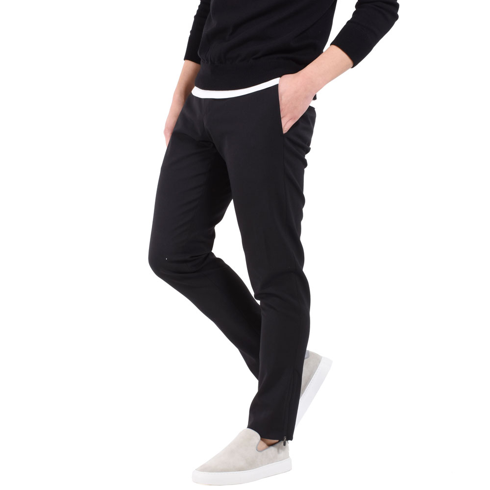 サラリとしたウール顔の生地でありながら、かなりストレッチが効いているので、履き心地が非常に楽チンです!車や自転車に乗る際、また長時間の移動などにはもってこいの一本に!そして、ポイントなのがスソのジップ。ジップを開く事で、ブーツやハイカットスニーカーの裾にモタつきがなく綺麗に合わせる事ができます!個人的にハイカットスニーカーを合わせて、スポーティなスタイルに仕上げたいなと思います!