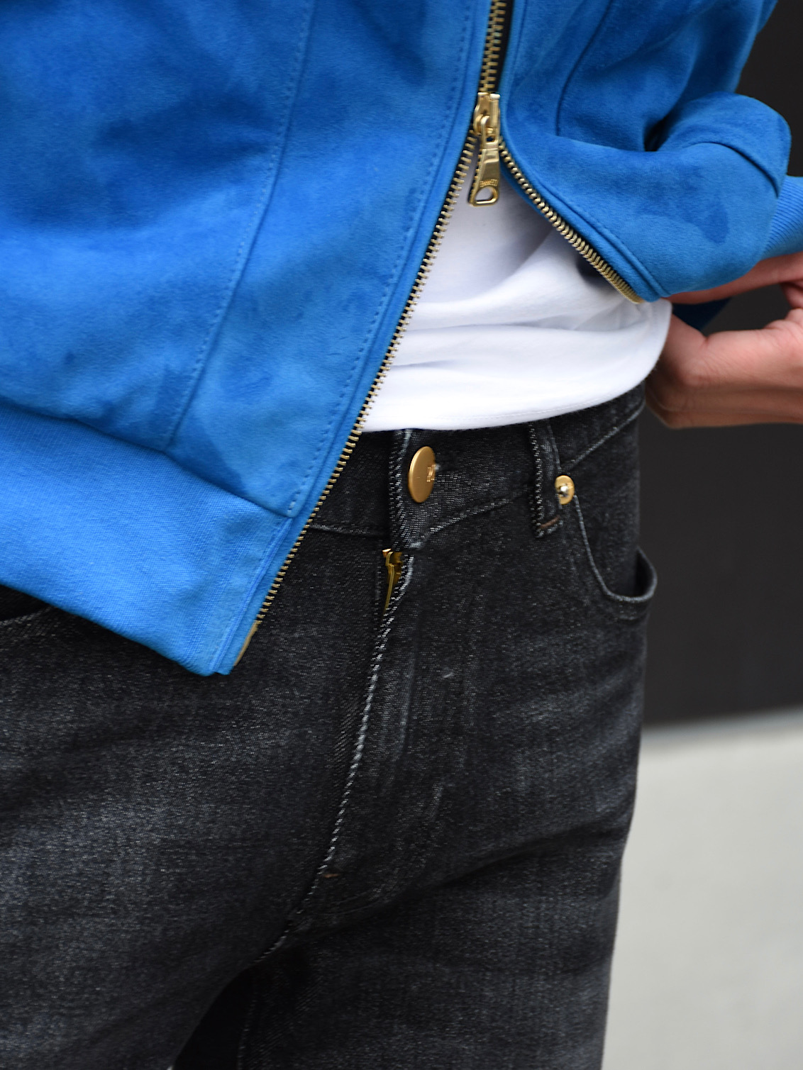・そのスペシャルな生地にゴールドパーツ(フロントボタン、ジップ、リベット、レザーパッチ)を組み合わせたのが、BR別注PTデニムゴールド!