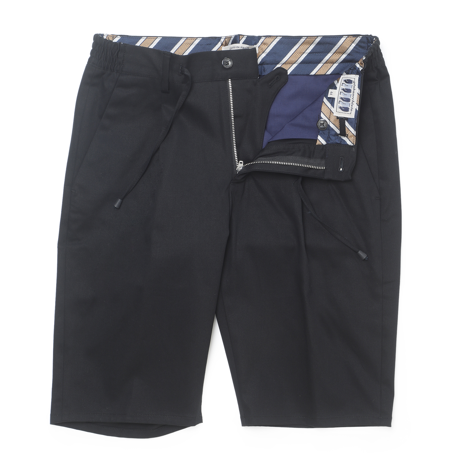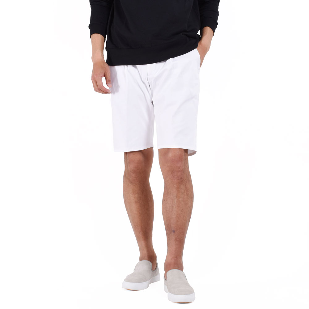 ・「giabsarchivio(ジャブスアルキヴィオ)」を代表するモデル"MASACCIO(マサッチョ)"のディテールを取り入れた1プリーツショーツ。両サイドウエストにシャーリングゴムが入ることによってウエストに沿う腰廻りを実現しつつ、プリーツによってゆとりあるヒップ廻りでストレスの無い快適な穿き心地です。丈は膝上くらいでスッキリと見え大人顔。