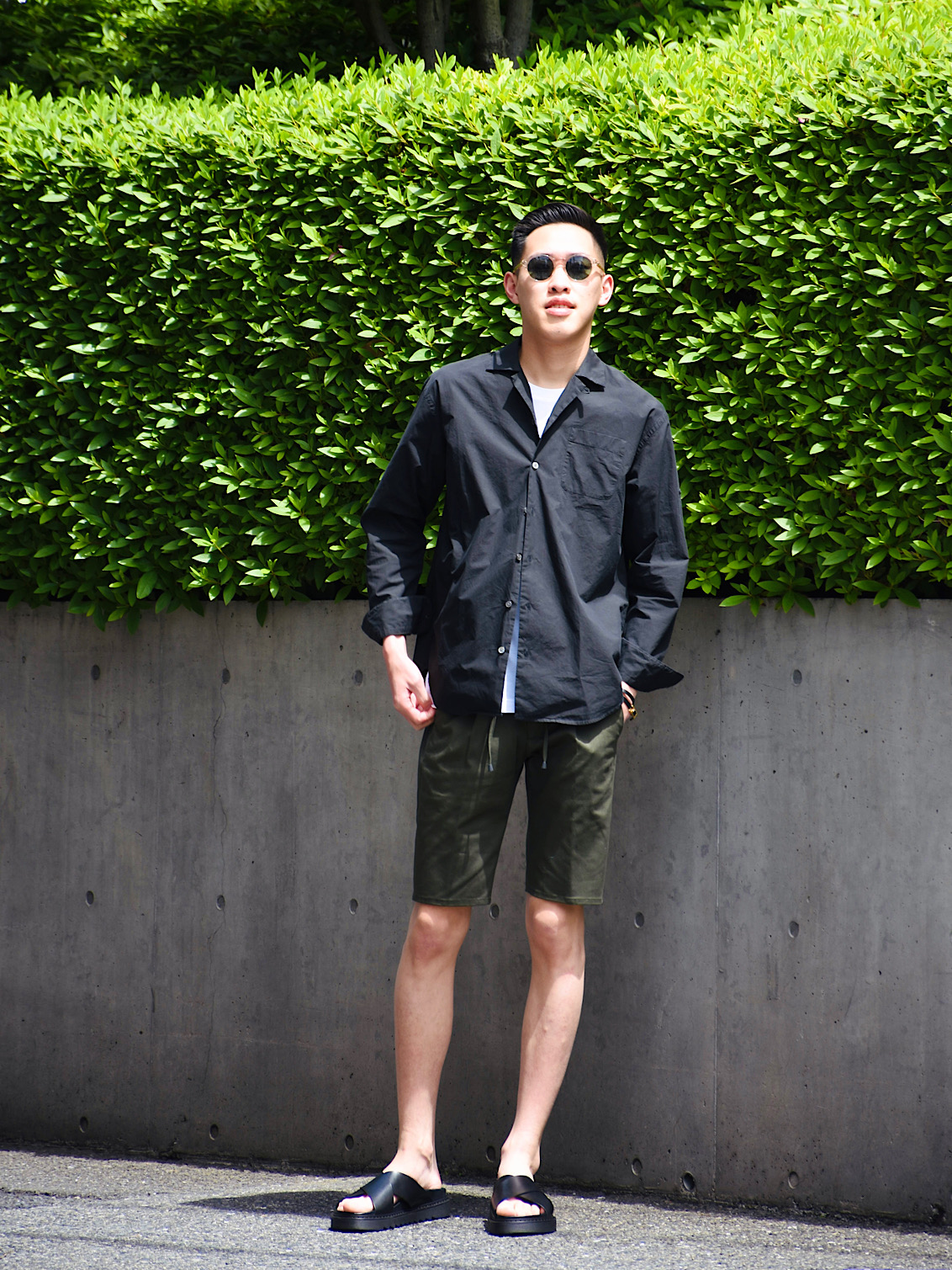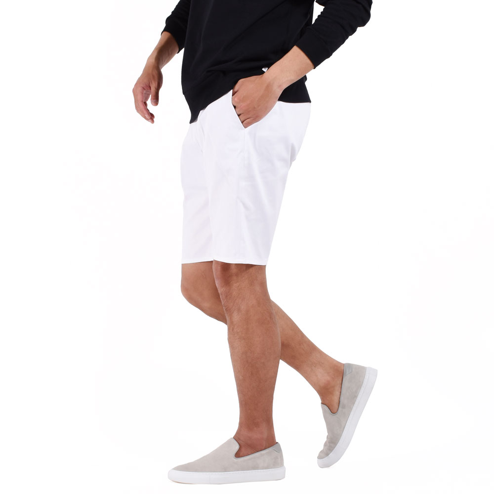 ハリのあるコットン生地を使用したこちらのショーツ。ウエストサイド部分にはゴムシャーリング、そしてドローコードが付属しており、スポーティな印象が特徴的。ワンプリーツ仕様なので、腰回りには少しゆとりがあり、リラックスして着用頂けます。