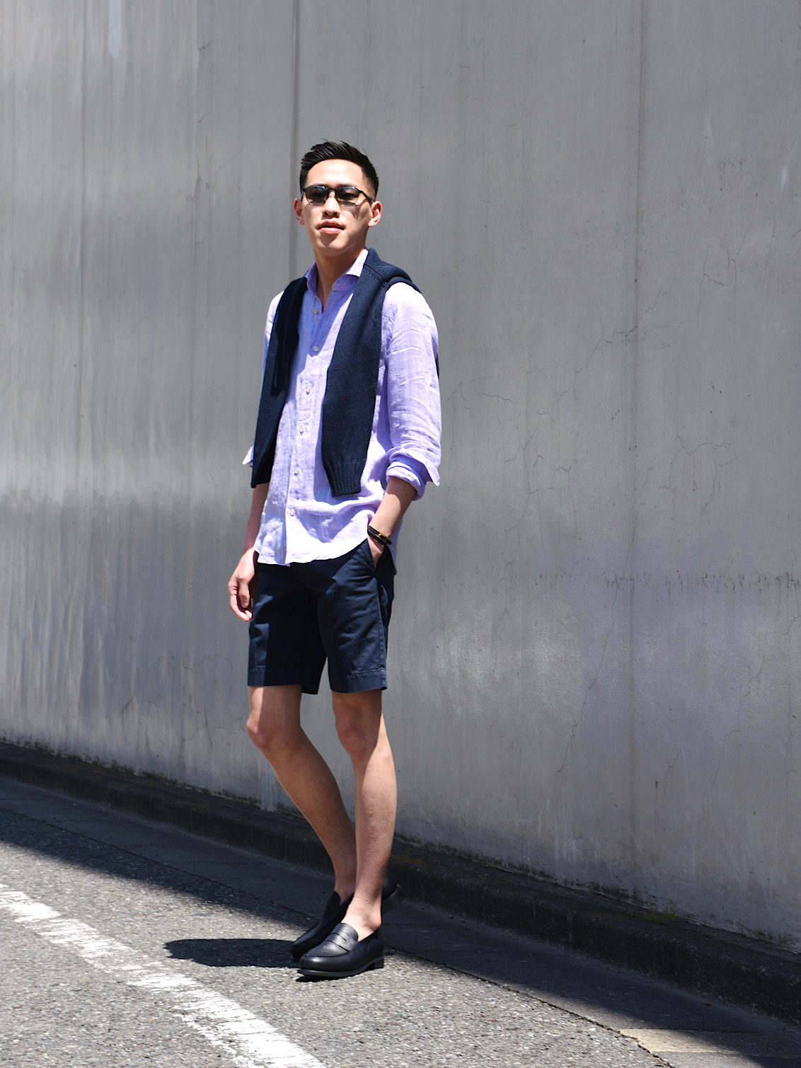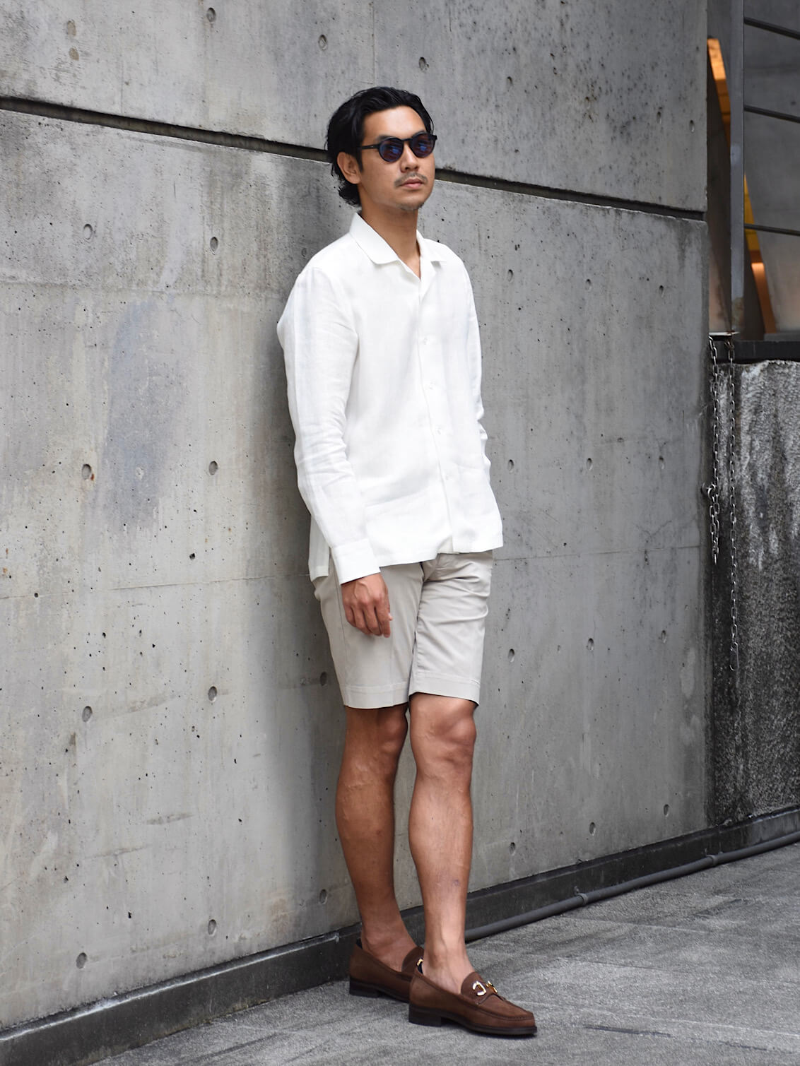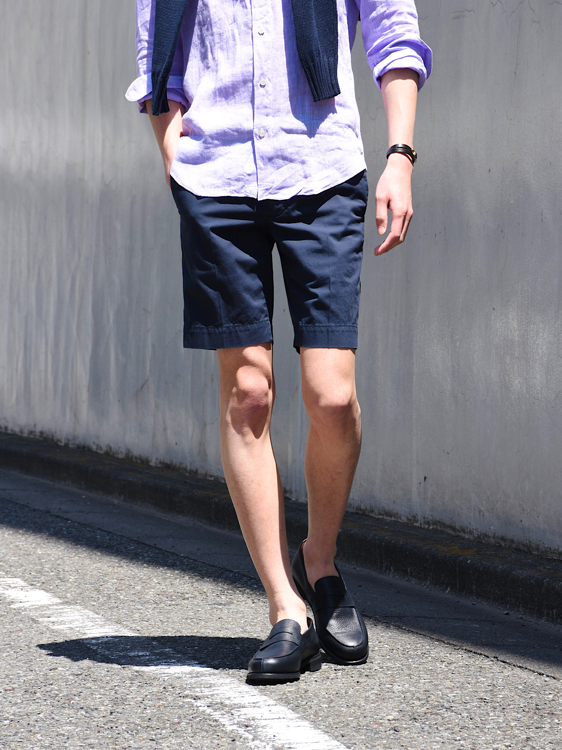 ・こちらは「INCOTEX(インコテックス)」の定番"SLIM FIT"モデルのショーツ。どなたが穿いてもスマートに見える魔法のシルエットで、膝より少し上に設定された丈の長さが絶妙。パンツ専業として培った技術と経験が注ぎ込まれた抜群の完成度を誇ります。
