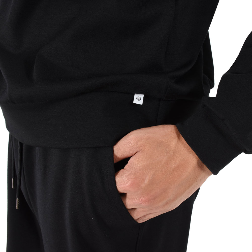 ・先染め糸で編み立ているため、上質ウール糸ならではの上品な光沢、柔らかくしなやかな風合い、ジャージー素材ならではの快適性を持ち合わせ、どこをとってもワンランクもツーランクも上のクオリティーを感じることができるハイブリッドジャージーを用いたアイテム。
