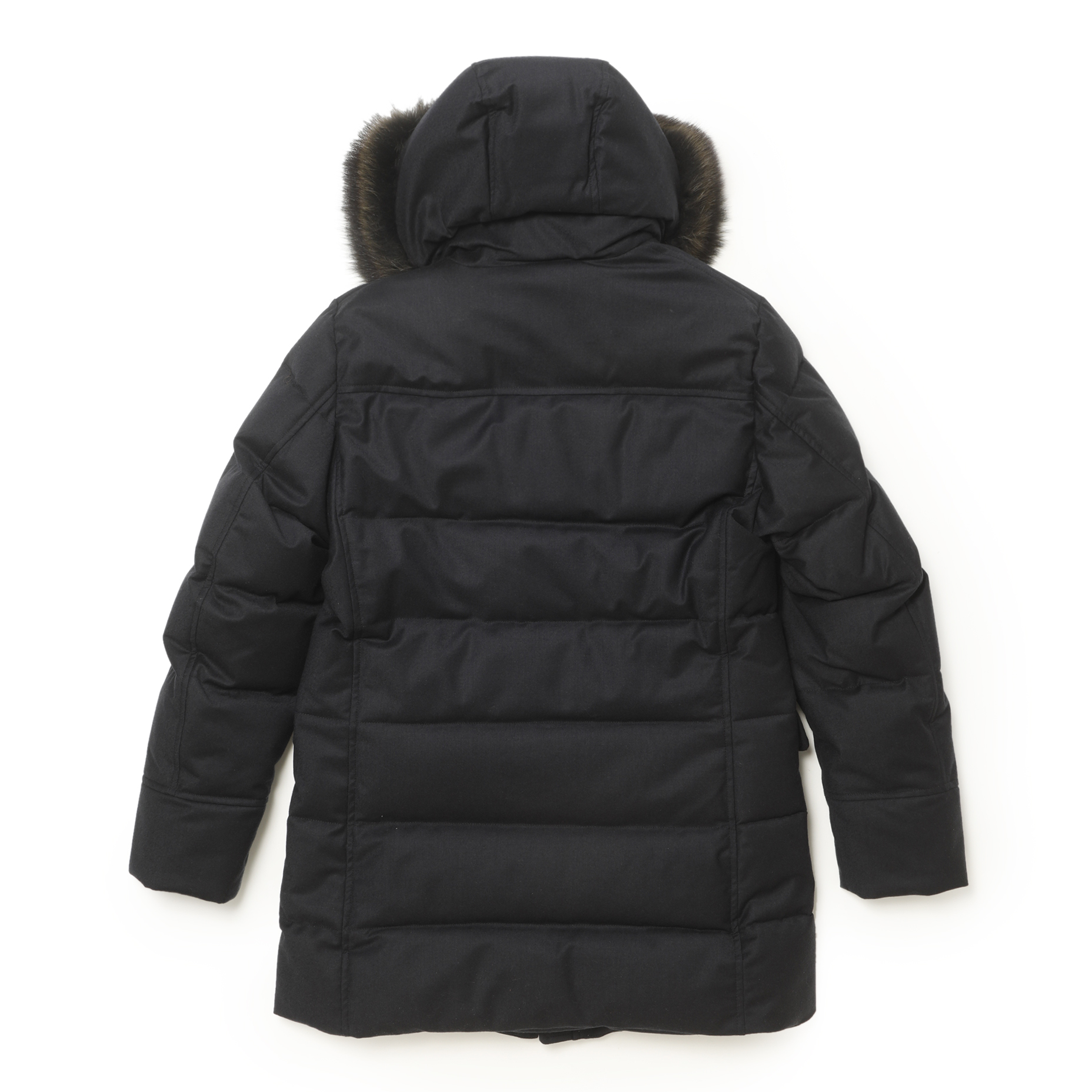 ・フード部分には天然ファーをあしらい、スナップボタン・ファスナー・ホーン釦といったパーツは特注のオリジナル品を使用。ディテールにも一切の妥協はありません。まさに細部に渡りクオリティーの高さを追求しています。