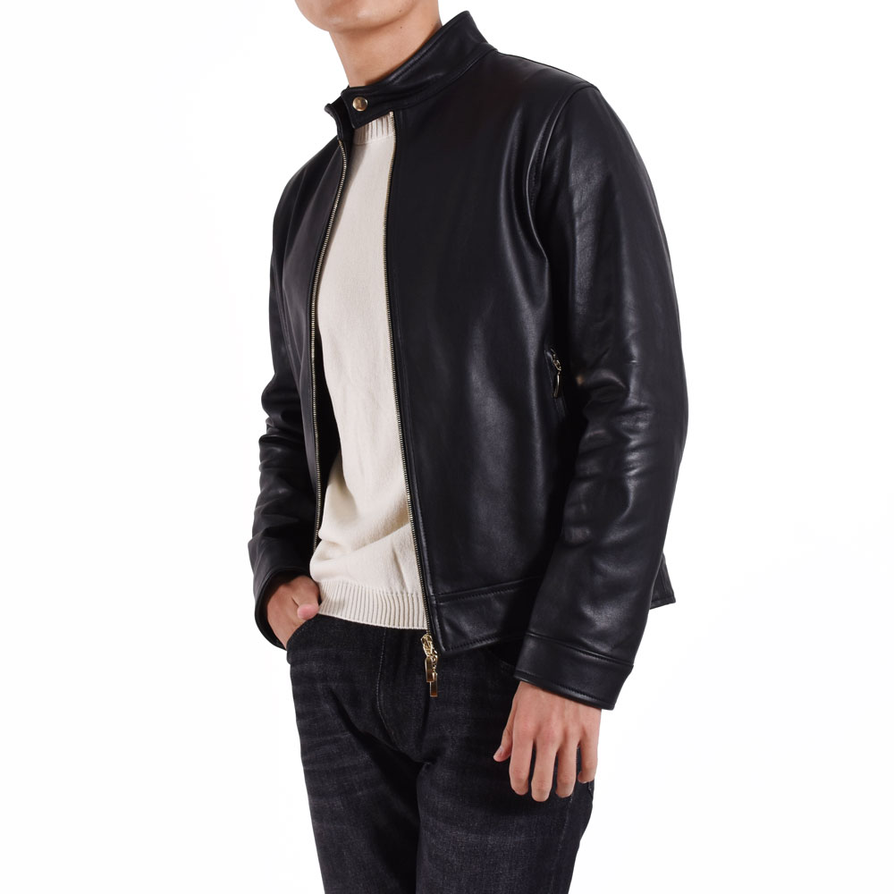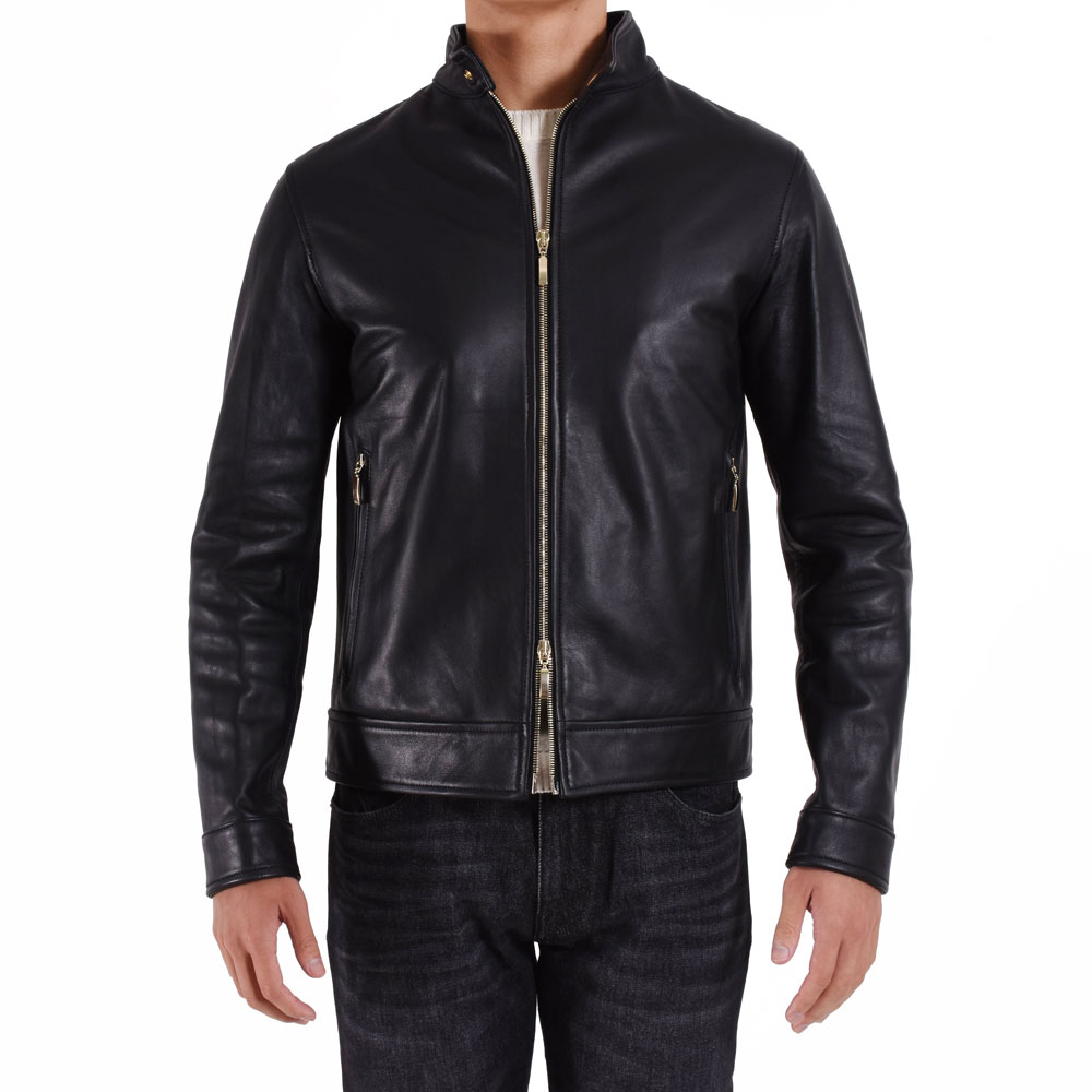 サイレンス / BR別注 ゴールドパーツ ゴートスキンレザー シングル ライダース ブルゾン/3931/NERO