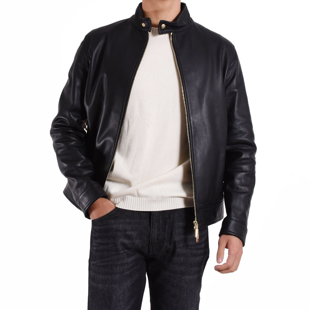 ・ライダースならではのハードさも良いものですが、その印象を絶妙な具合に薄めることで、室内で着やすくなったり、デスクワークがしやすくなったり、とジャケット代わりに着ること多くなった今の時代感に合わつつ、ラグジュアリー感のあるBR別注を実現しました。