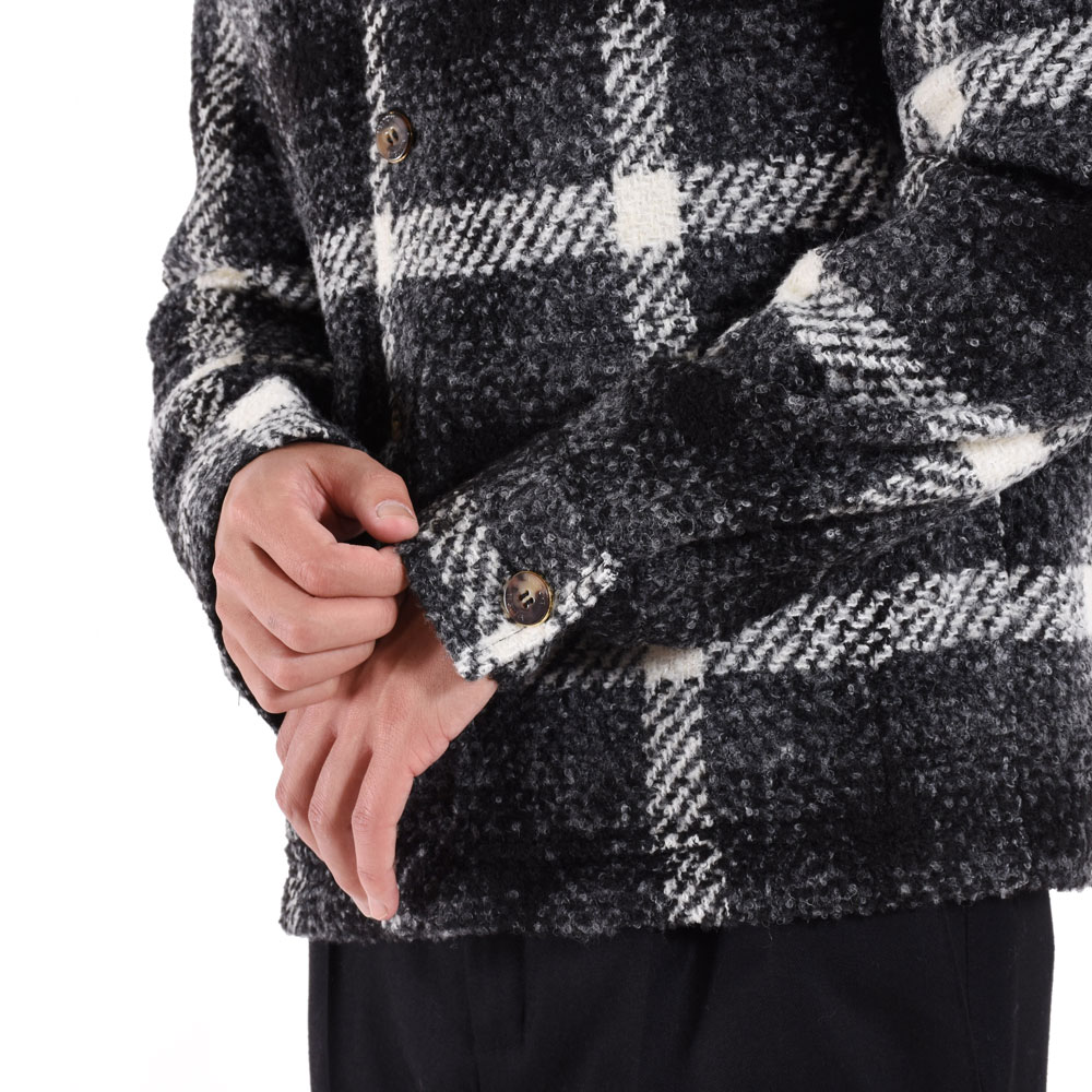 ニットやカットソーの上からさっと羽織るだけでサマになる「BAGUTTA(バグッタ)」のシャツブルゾン”MARAIS”。大柄チェックが目を惹く一着です。