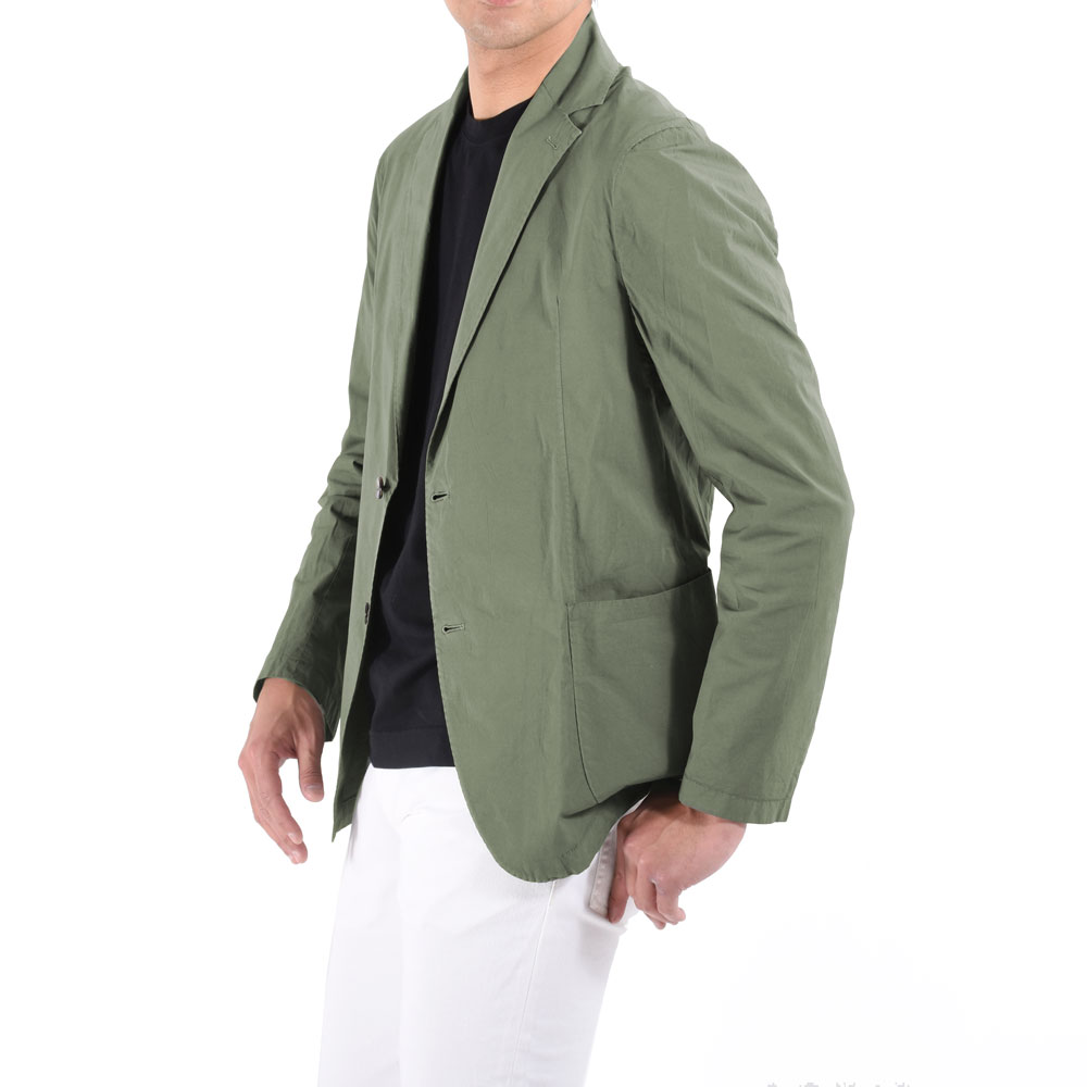 ・2ボタンモデルのこちらは、涼しく着られるよう緩やかなフィッティングとシルエットでリラックス感あるムードを醸しながら、軽い作りのテーラードジャケットと比べても何ら遜色のないクオリティー。少し袖をたくしあげ、ラフに着こなすのもオススメです。