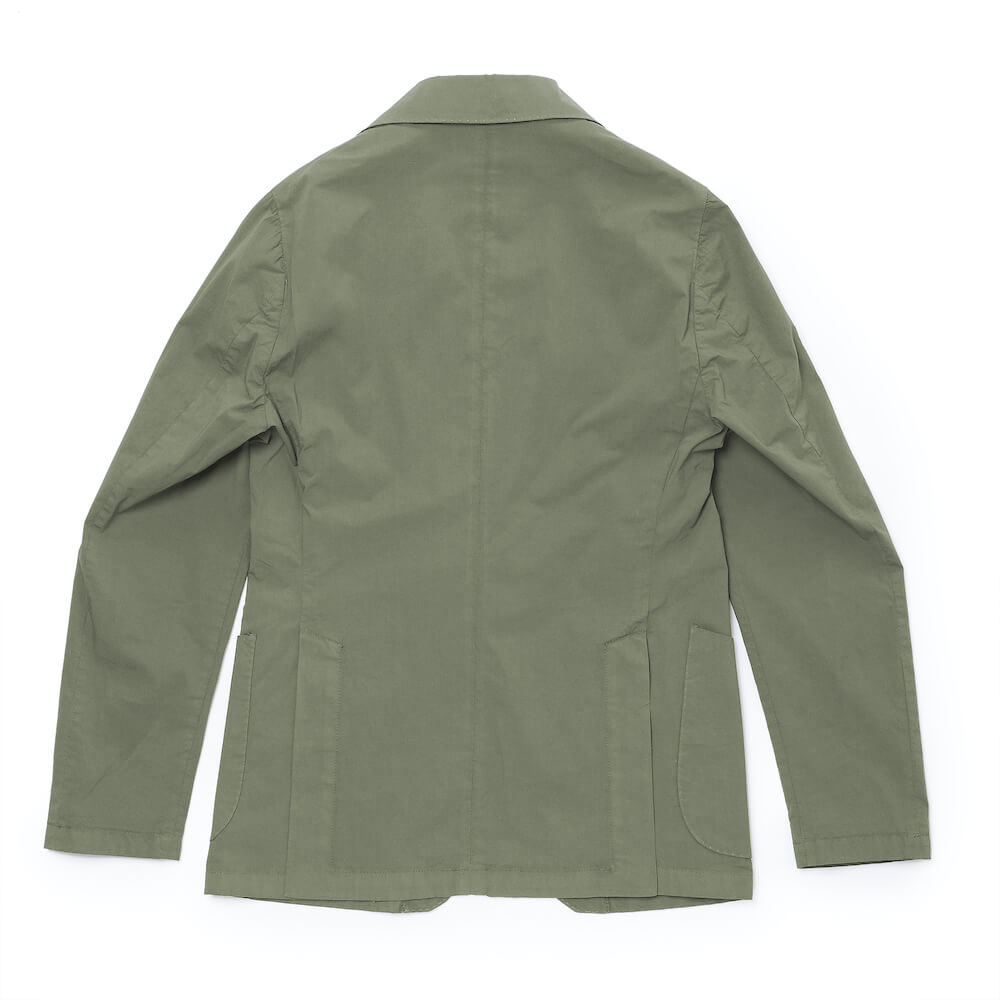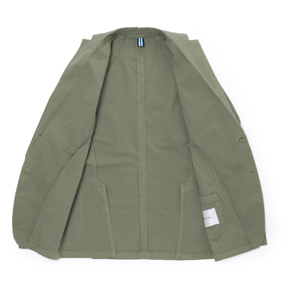 ・一枚仕立ての軽さはそのままに、力が掛かる背中上部には共地が貼られ補強、ショルダーラインやフロントの見え方に大きく影響する前身頃は大見返し仕様となっており、袖裏地も付属しています。