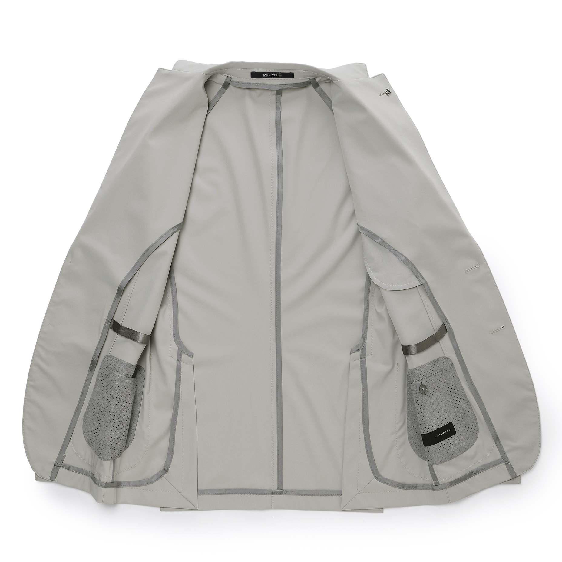 ・モデルは「TAGLIATORE(タリアトーレ)」が誇る軽量仕立ての"DAKAR"。形状保持とボリューム感を出すためにジャケットのキモとも言える襟、肩、バスト部分以外は一枚仕立てです。見た目は完全にジャケットなのに着心地はシャツ並みという軽量感をお楽しみ頂けます。