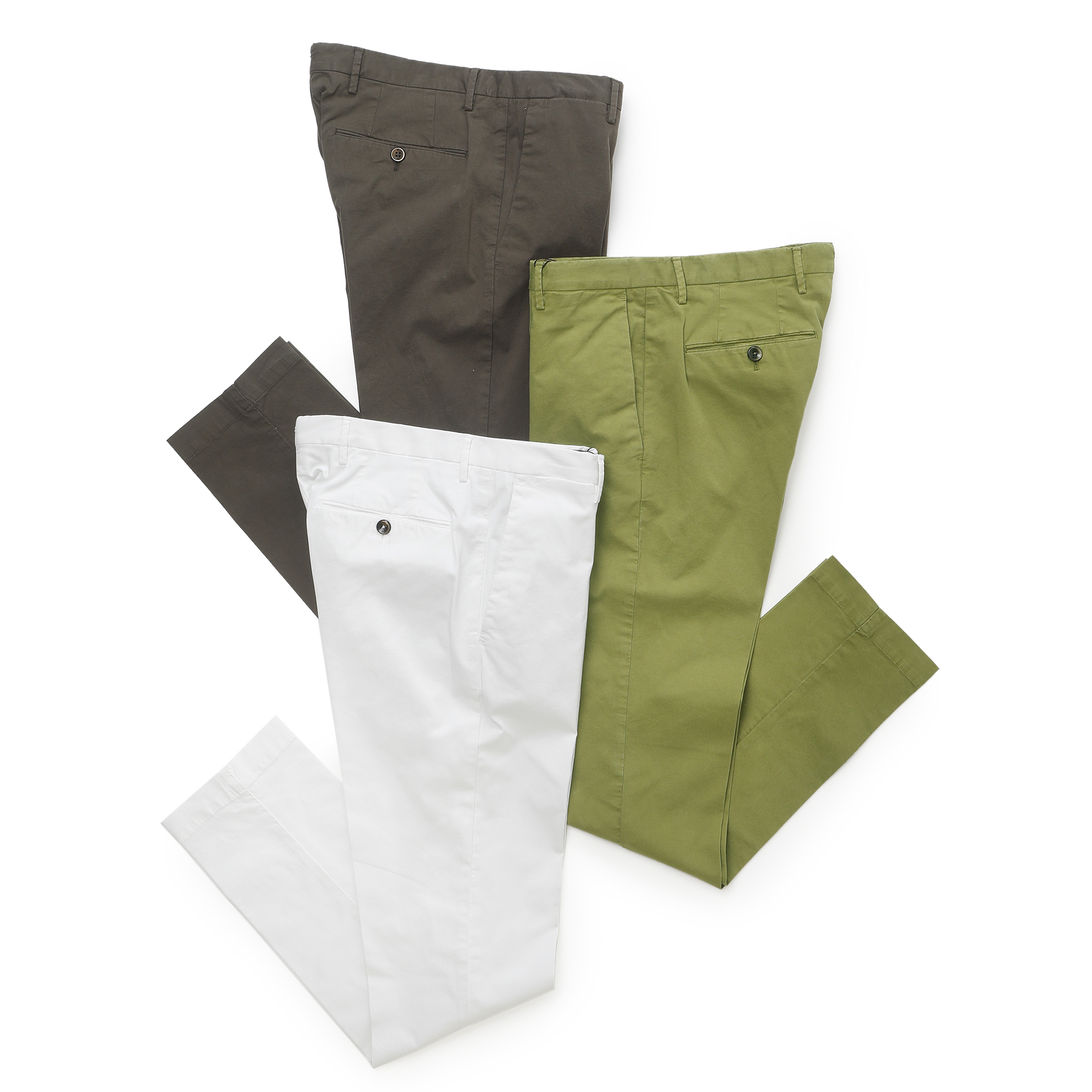 ・生地は目付320グラムのライトなストレッチギャバジン。ストレッチ性抜群で「PT  TORINO(ピーティートリノ)」が得意とするガーメンドダイによってソフトな風合い、こなれ感たっぷりの色合いに仕上げられています。全5色にてご用意しました。