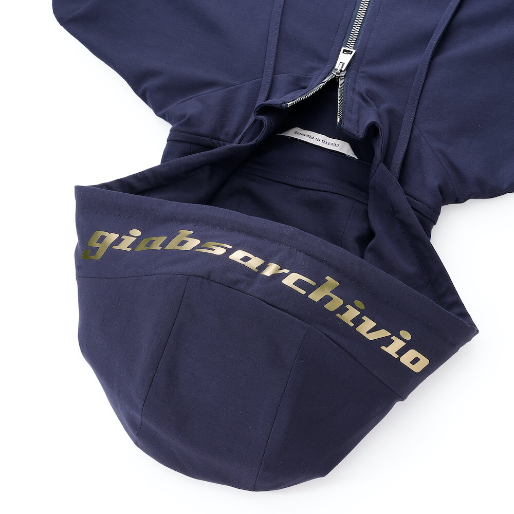 ・このプリントを入れるリクエストに対して、「giabsarchivio(ジャブスアルキヴィオ)」はフードのパターンを通常の"PUCCI"から変更。ロゴプリント部分に縫い目が無いようモノ作りへのこだわりを発揮してくれました。