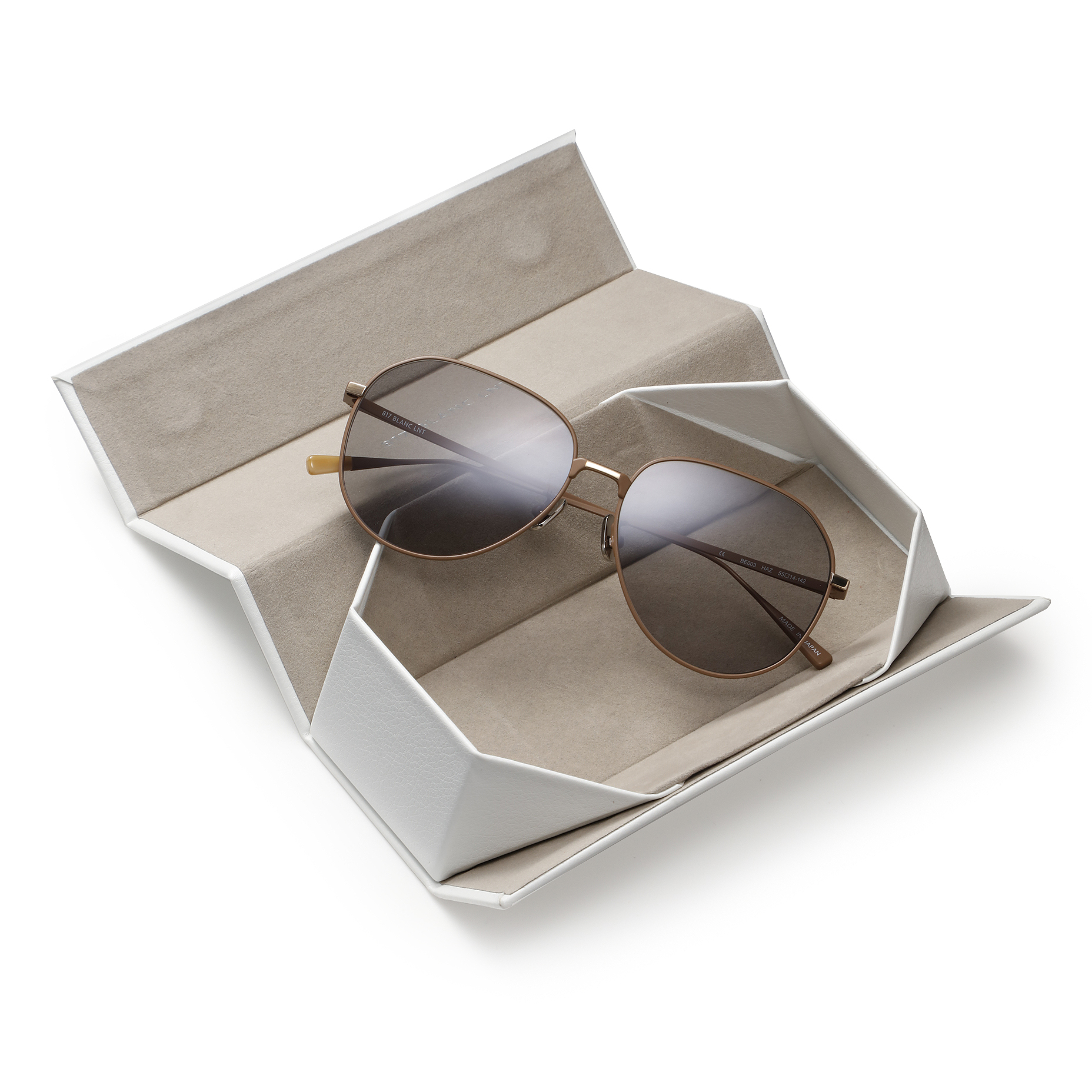 ・「BLANC..(ブラン)」流にアレンジを加えたディアドロップタイプ。レンズの膨らみを抑えて小ぶりに調整し、ティアドロップ感の強いゴールドやシルバーメッキではない柔らかなオフホワイトのフレームカラーを採用することでスタイリッシュに仕上げられています。