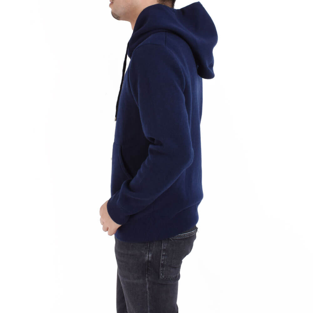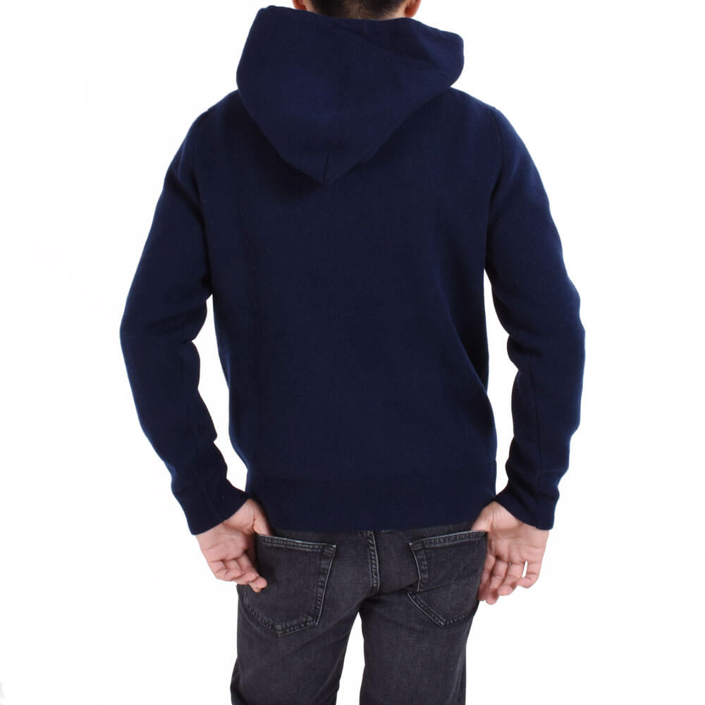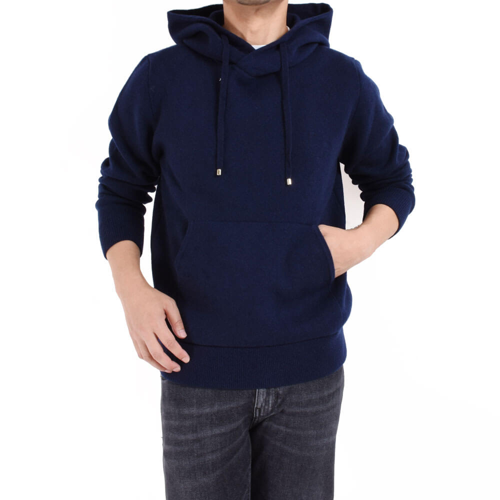 大好評アイテムが今シーズンも入荷しました!今やワードローブに欠かせない存在となったパーカー。ニットなので大人っぽく魅せられることに加え、カシミアを贅沢に使っているところが他のパーカーと一線を画す存在です。リラックスなのにどこか気を抜いていないラグジュアリーな雰囲気が堪りません!糸を2倍使用していることで保温性も抜群。シルエットは前・後ろ・横・から見ても適度なボリューム感と立体感もあり「只者ではないムード」が得られます。サイズ44を着用。袖や裾のリブのテンションも◎で丁度良いサイズ感でした。スッキリとしたサイズ感がお好みでしたらワンサイズダウンもお勧めです。