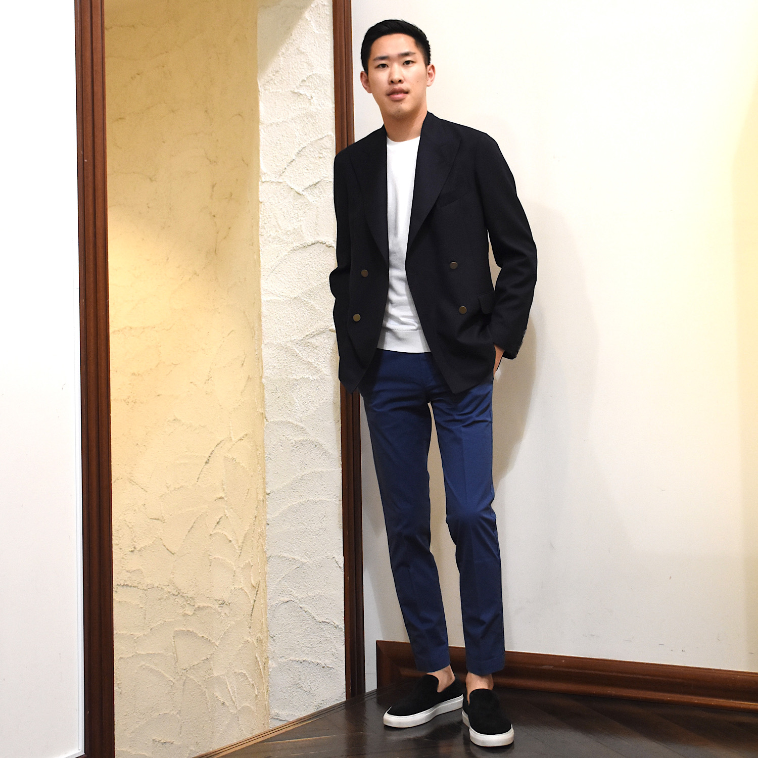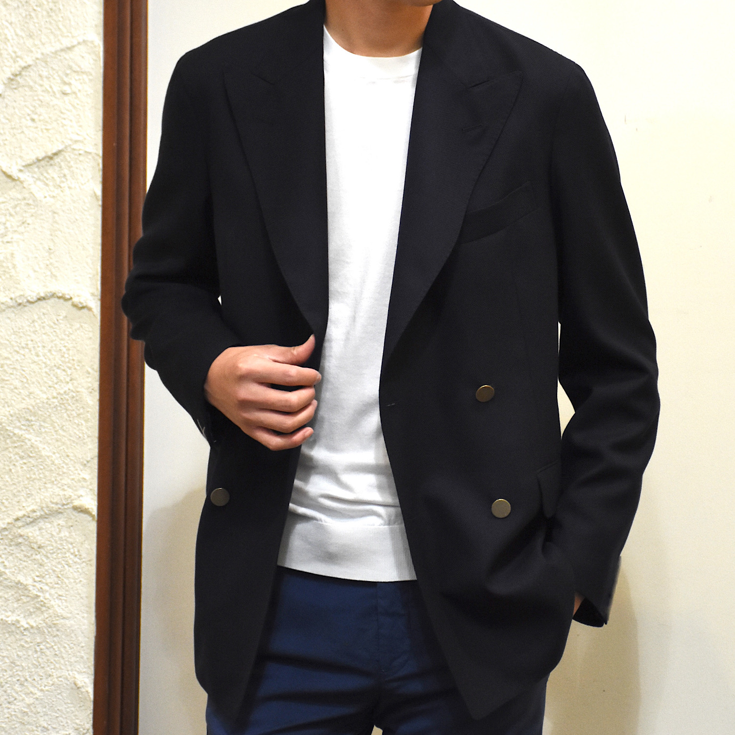 ・複数あるジャケットモデルからBRは4つボタンのダブルブレステッドをセレクト。元々「BOGLIOLI(ボリオリ)」のダブルブレステッドは洗練されたルックスと着心地の良さが融合された仕立てで特に評価が高いのです。