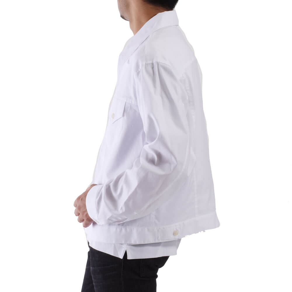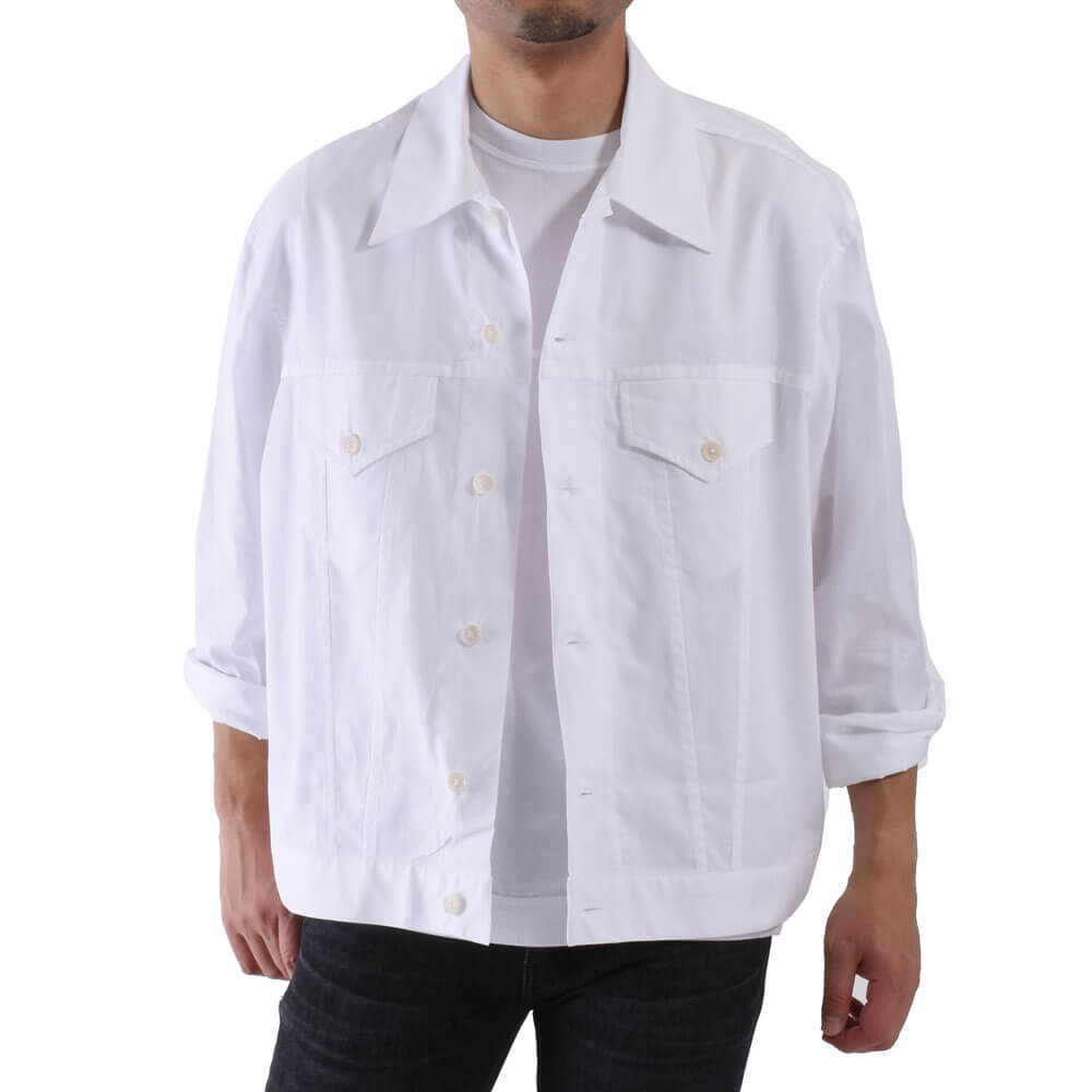 ・いわゆる3rdタイプのGジャン(トラッカージャケット)をモチーフとしており、シルエットはオーバーサイズ。ゆったりとした身幅と袖幅、適度な着丈により、バサっと羽織るにはピッタリです。シルエットに合わせてネックポイントも下げられており、とてもリラックスしたムードを醸します。