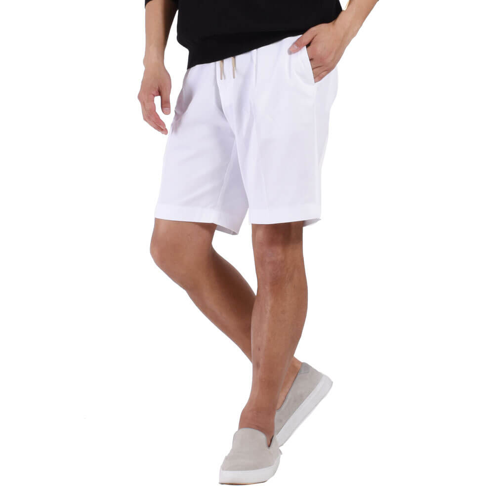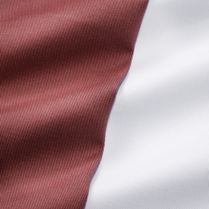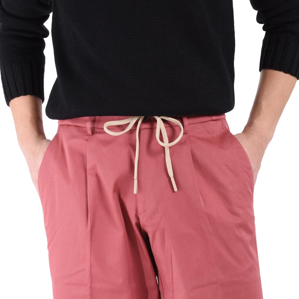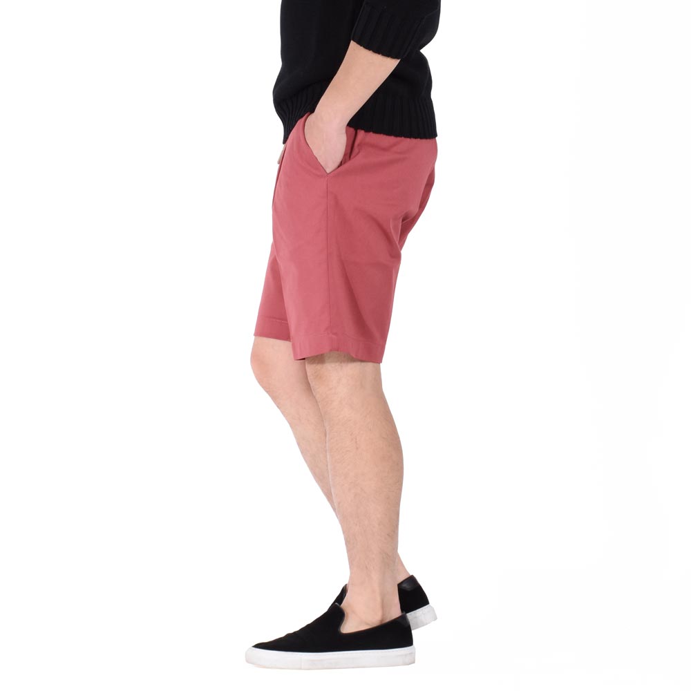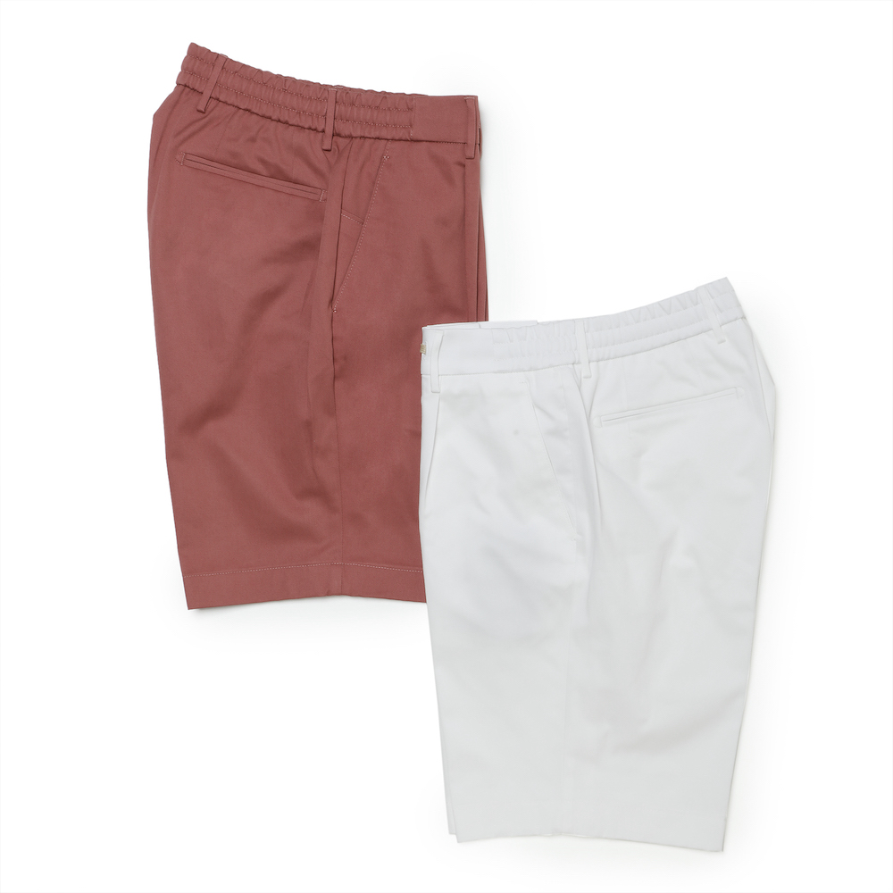 ・生地は先染めのストレッチコットン。ストレッチ性抜群で、腰廻りのゴムシャーリングによってとにかく快適な穿き心地。先染めならではのくっきりとした色合いとハリのある端正な綾織りが特徴です。全4色(ホワイト / ローズ 、 ダークネイビー / カーキ)をラインナップ。