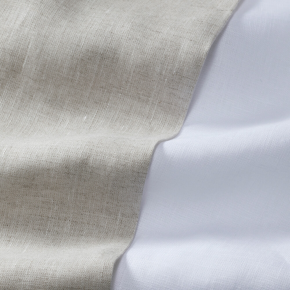 ・生地は春夏シーズン「Maria Santangelo(マリア・サンタンジェロ)」定番のリネンで全4色(ホワイト / ライトベージュ、ブラック / ライトネイビー)をラインナップ!リネン特有の渇いた雰囲気はそのままに、着心地の良さも両立させるべくなるべく肌当たりの柔らかいものをセレクトしました。
