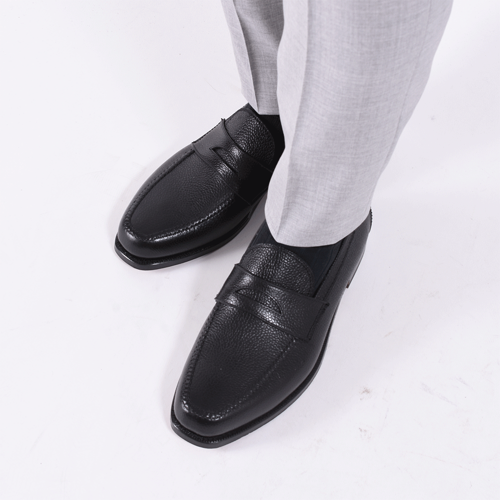 ・程よいノーズの長さでややスクエアなトウを持つ\"Jonathan\"はエレガントな雰囲気のスリッポン用ラスト(木型)です。それでありながら、カジュアルさのある甲部分のモカラインを組み合わせるのが「F.LLI Giacometti (フラテッリジャコメッティ)」らしいところ。絶妙なミックス感です。