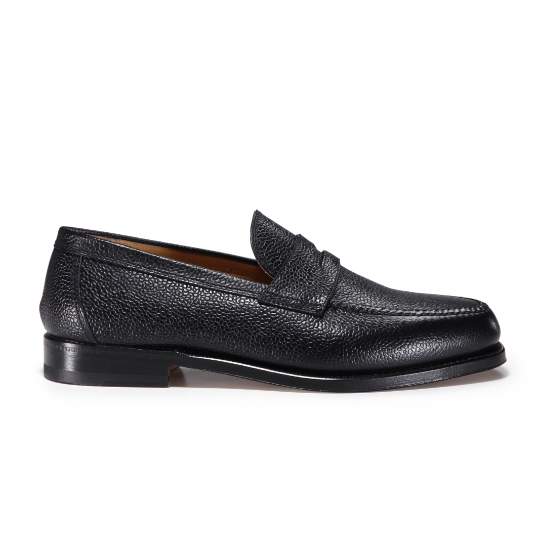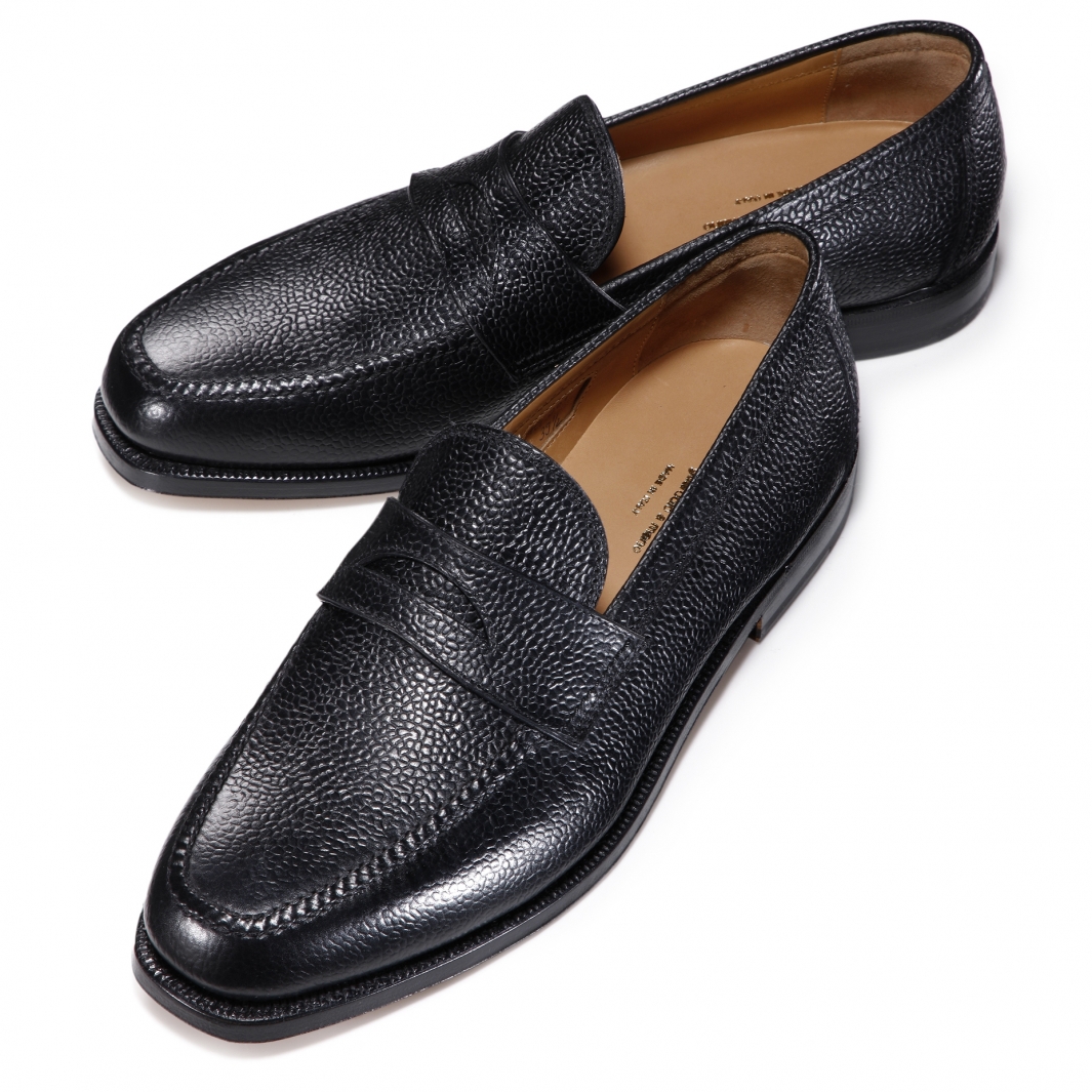 ・「F.LLI Giacometti (フラテッリジャコメッティ)」は、イタリア国内外の高級タンナーと関係が深く、クオリティーの高い素材を使用する事が可能です。こちらのアッパーは、カーフで名高いフランスはデュプイ社のもの。しっかりとした厚みがあり、傷が目立ちづらい耐久性抜群のスコッチグレインレザーです。こちらのブラックはシボの美しさが際立ちます。