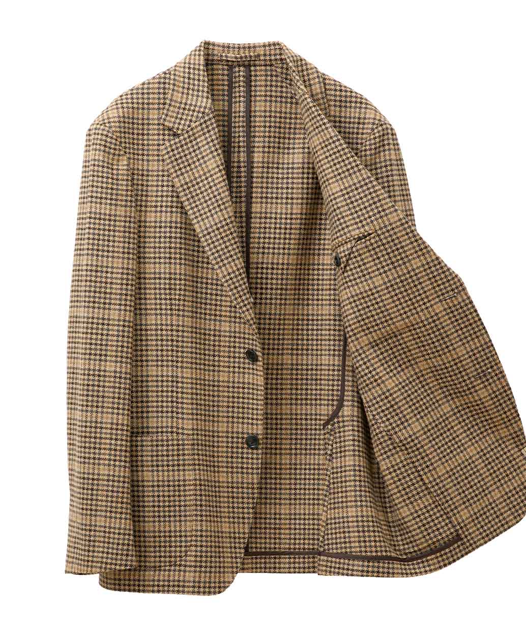 上質なメリノウールをベースに、カシミヤをブレンドした糸で織り上げたチェック生地を使用したジャケット。ウールの保温性とカシミヤの柔らかさによる快適な着心地の良さと上質感を兼ね備えています。クラシックチェック柄はトラディショナルな雰囲気を醸し出しつつ、ラルディーニならではの美しいシルエットにより洗練された印象をプラス。ビジネスシーンからカジュアルなジャケットスタイルまで幅広く対応できる一着です。