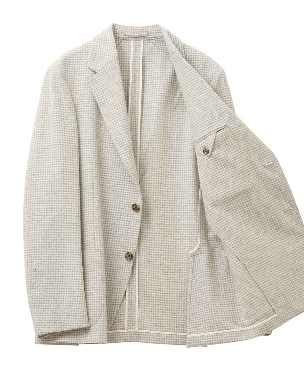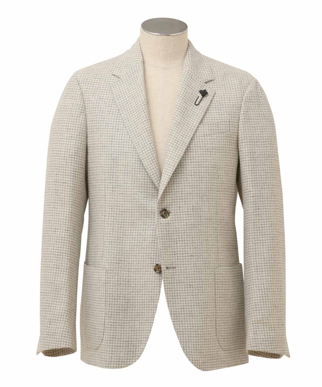 上質なメリノウールをベースに、カシミヤをブレンドした糸で織り上げたチェック生地を使用したジャケット。ウールの保温性とカシミヤの柔らかさによる快適な着心地の良さと上質感を兼ね備えています。クラシックチェック柄はトラディショナルな雰囲気を醸し出しつつ、ラルディーニならではの美しいシルエットにより洗練された印象をプラス。ビジネスシーンからカジュアルなジャケットスタイルまで幅広く対応できる一着です。