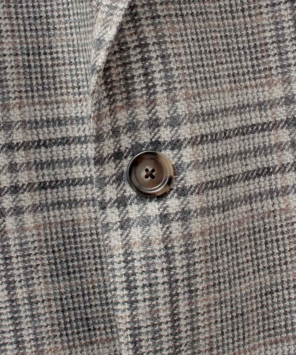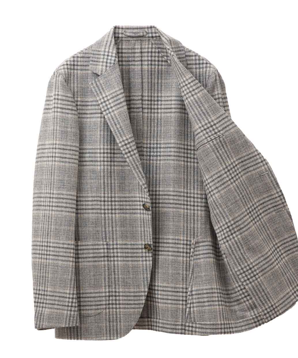 上質なメリノウールをベースに、カシミヤをブレンドした糸で織り上げたチェック生地を使用したジャケット。
