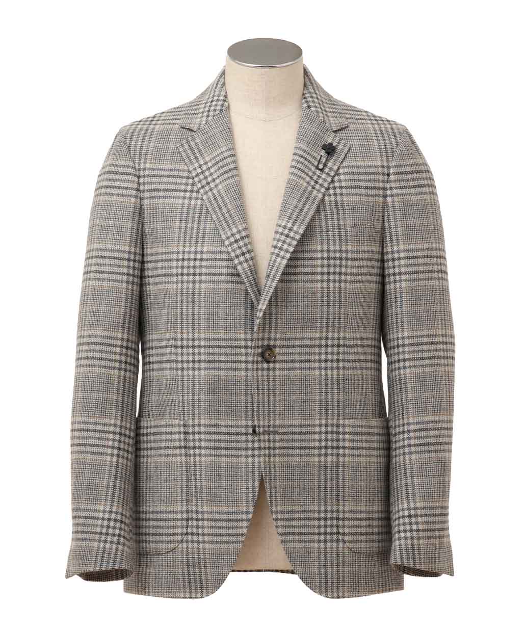 LARDINI ウール カシミヤ チェック シングル ジャケット