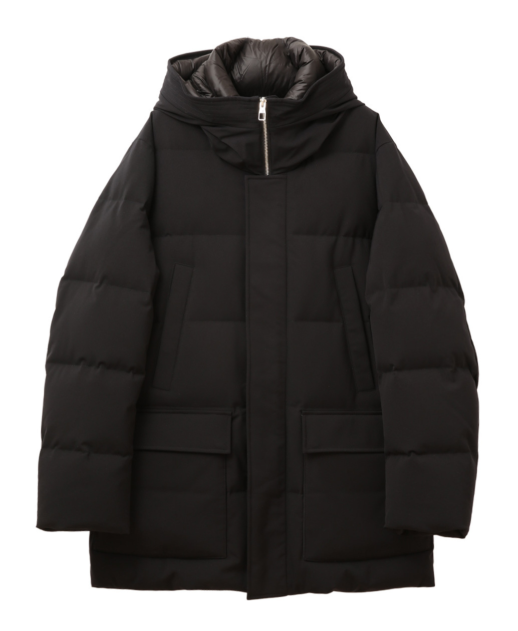 撥水ツイル生地×ストレッチで快適な着心地を体感できるフーデッドダウンジャケット。