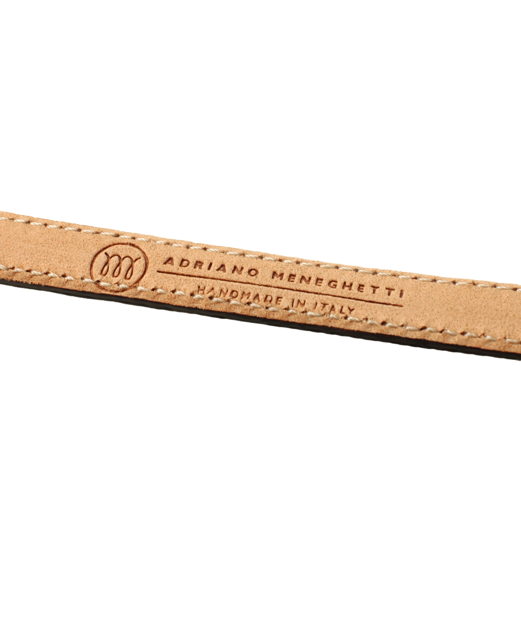 ADRIANO MENEGHETTI(アドリアーノ・メネゲッティー)は、2011年にミラノでスタートしたベルトを中心にレザーアイテムを展開するブランド。 アドリアーノ・メネゲッティーの製品は実用性と美的感覚を兼ね備え、細心の注意を払って裁断、縫製された高品質の革と織物で作られています。最高の職人と最高の原材料を使い愛情を込めてイタリアで手作りされた製品を作りあげる事に重きを置いて作られるレザーアイテムは、創業当初からイタリアのファッションピープルたちの目に止まり瞬く間に広がりを見せています。
