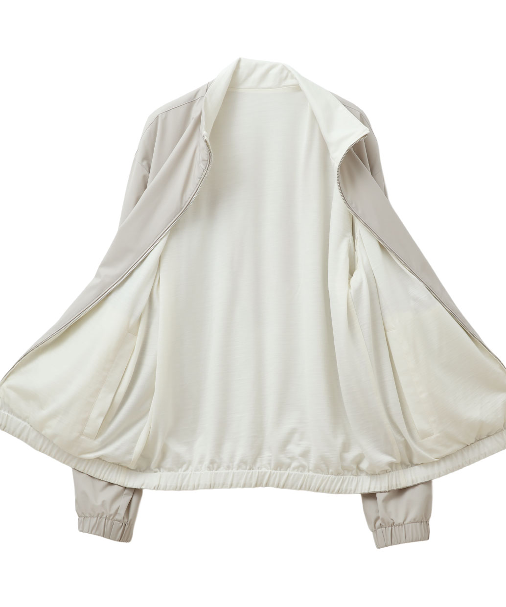 ストレッチナイロンとメリノウールジャージ、両面で着用できるリバーシブル仕様の大人ブルゾン。