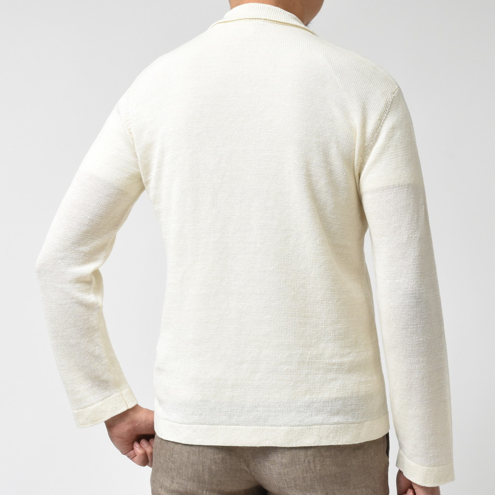 サルトリアのテクニックを用いた仕立てに特徴を発揮するブランドではありますが、古き良きヴィンテージの香りを漂わせるジャケット型ニットというのも得意としていまして、このリネンの風合いの良さは群を抜いて優れています。