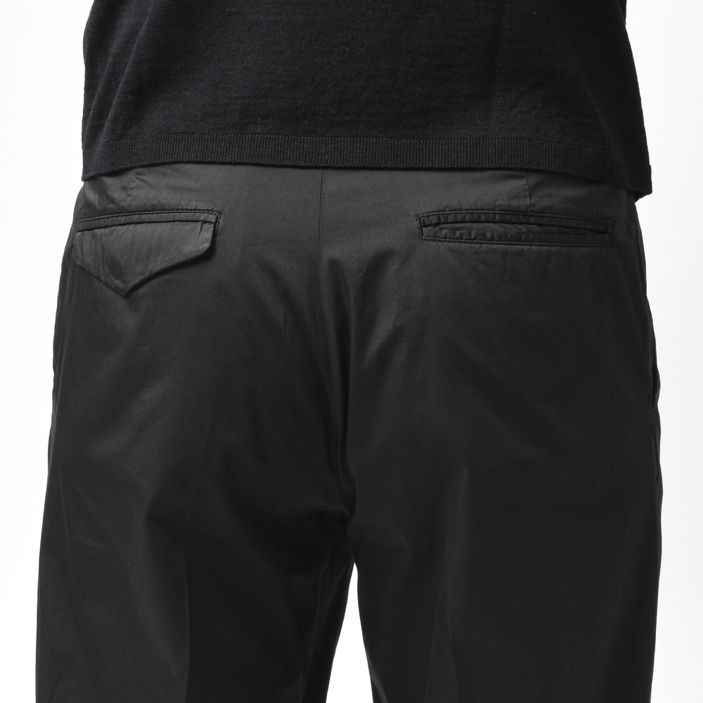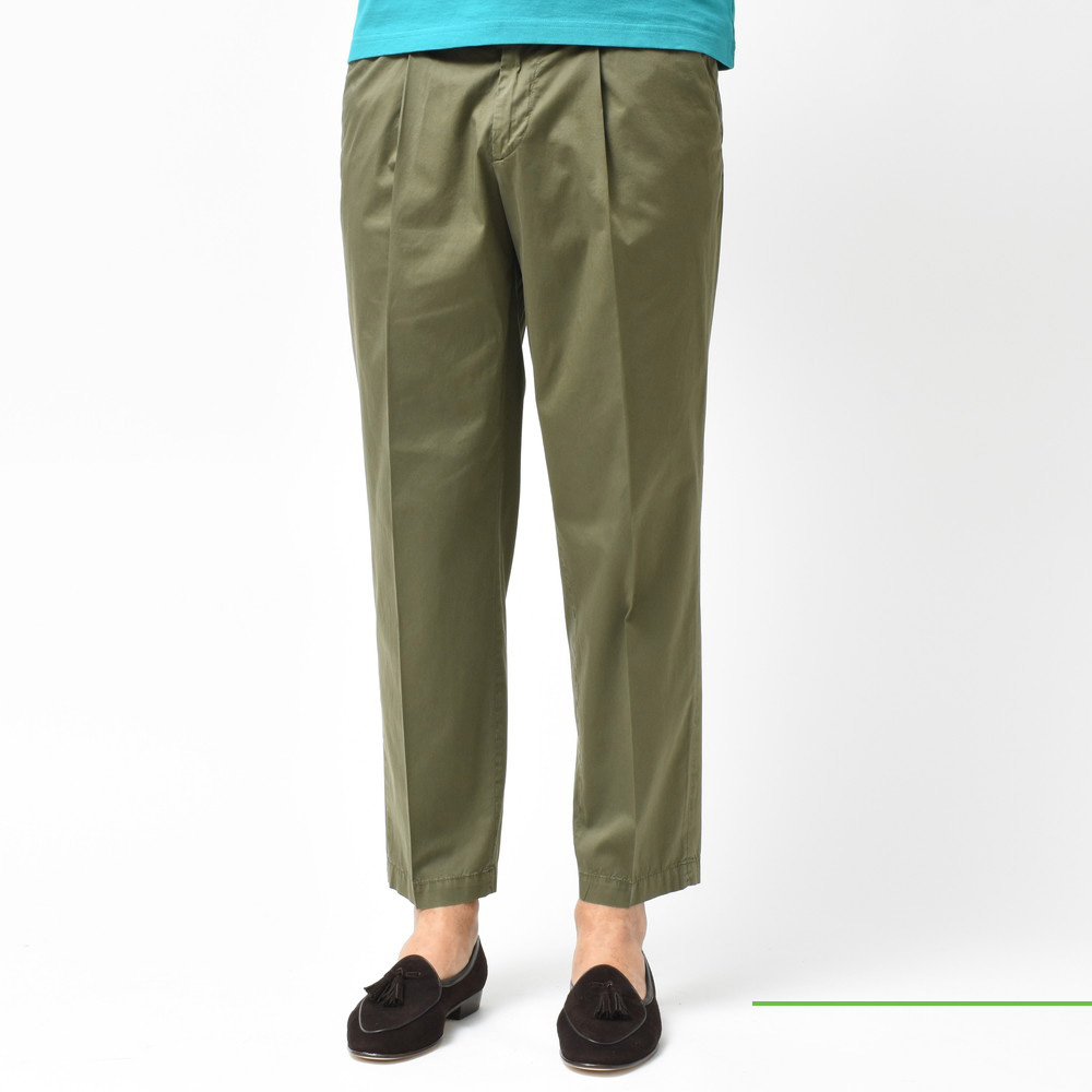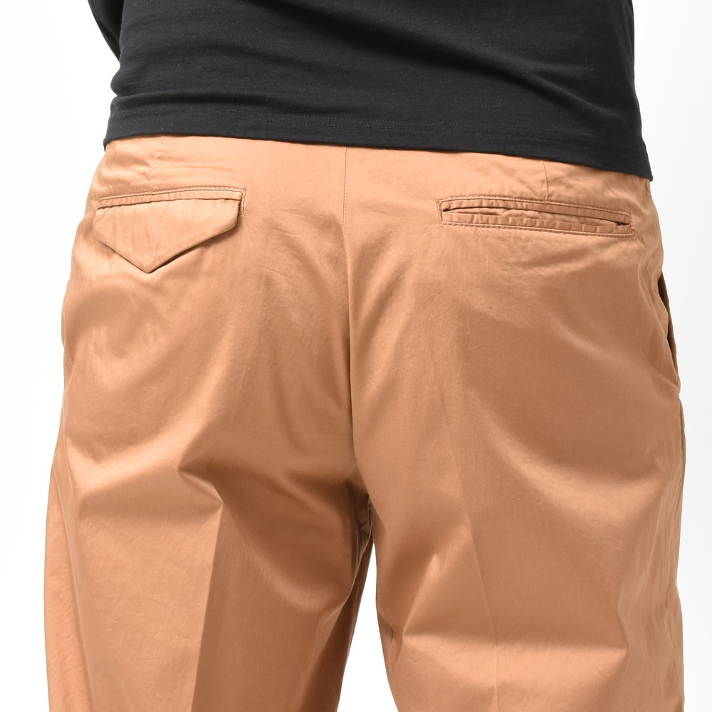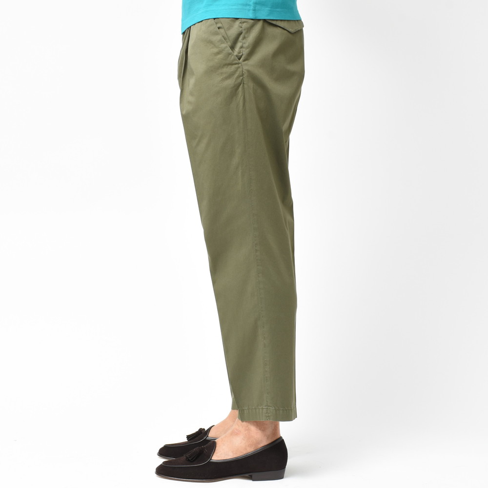 適度なリラックスさとデニムやチノなどのカジュアルパンツにはない上品さがあるCellarDoor(セラードアー)のコットンストレッチサテンサイドアジャスター1Pテーパードパンツ、ブランドお馴染みのシルエットに今回はやや光沢感のある生地を採用しておりまして、カジュアルパンツながらもほのかに漂う艶っぽさが素晴らしい存在に仕上がっています。