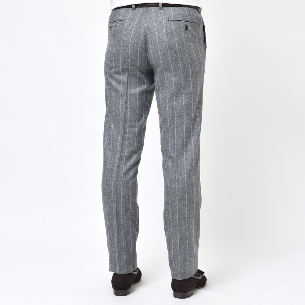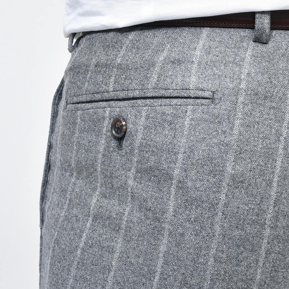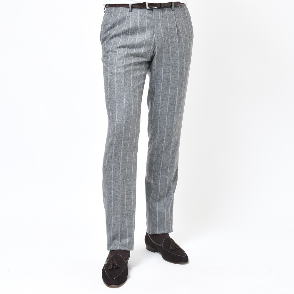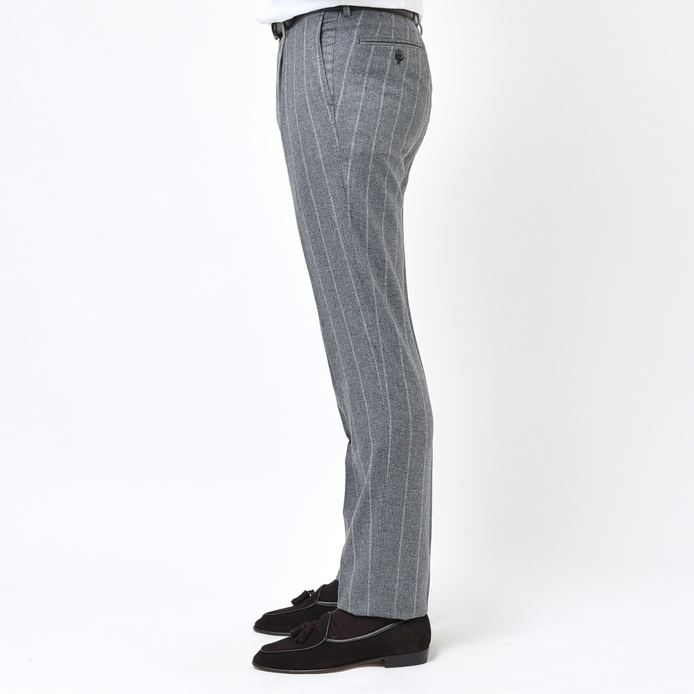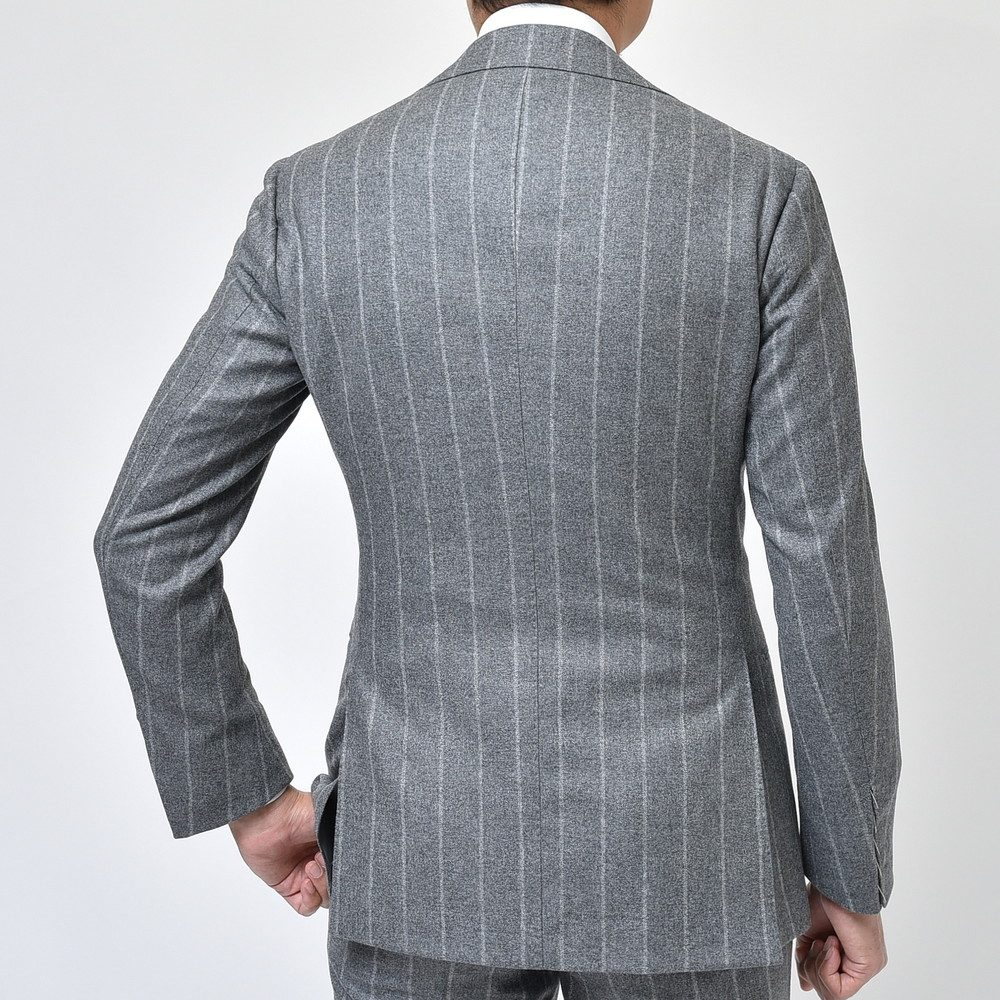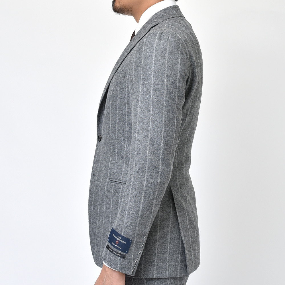 RING JACKETの最高という事で、これはセットする生地も気合を入れないと・・・と思いつつセットしたのがこちらのErmenegildo Zegnaエルメネジルド ゼニア。イタリアらしい渋みと色気を放つチョークストライプですが、何と何と、素材は泣く子も黙るカシミア100%をチョイス。