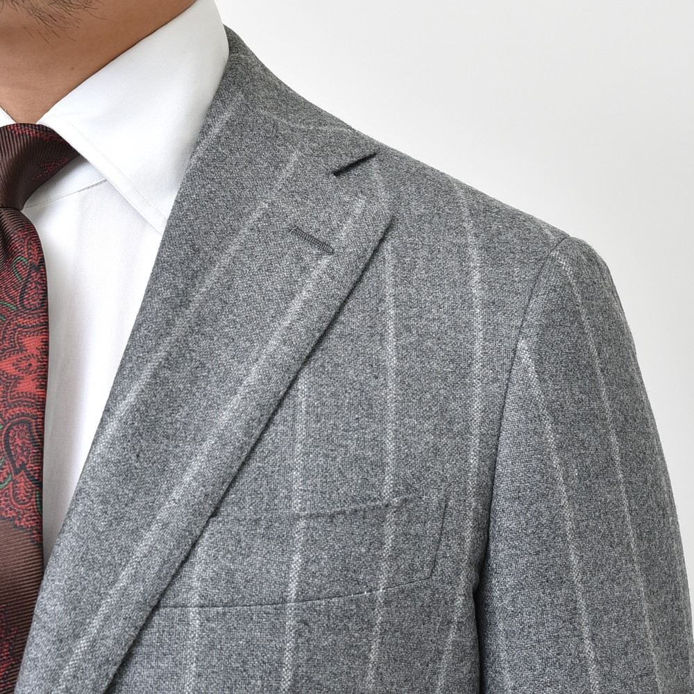 カシミア100%のスーツ、世の中に出回るスーツの中でも1%未満ではないでしょうか。希少といえば希少、リスクが高いので作らないという方が正しいのかもしれません。