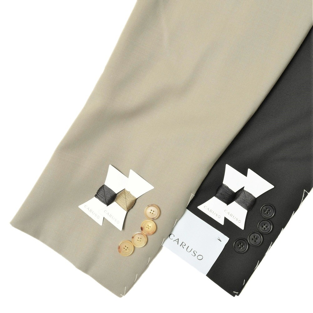 CARUSOのイメージはクラシックなテクニックを活かしつつ、仕立ては軽く、シルエットはモダンなバランスに・・・という感じなので、あまり重厚な生地というよりはこのくらいの少し艶やかで軽やかなタイプが似合うように思います。