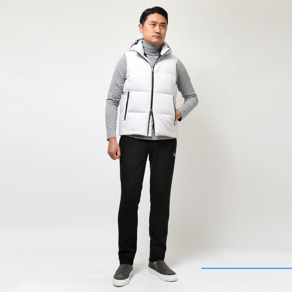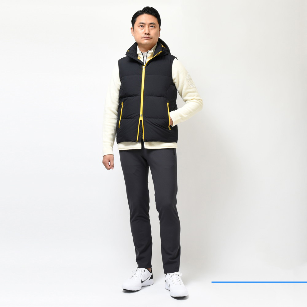 そして、便利なだけではなく、もちろんオシャレ。いわゆるゴルフ用のダウンベストにはないスタイリッシュ感がありますよね〜。