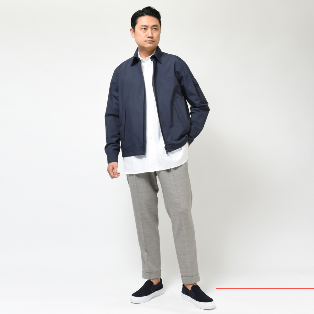 機能的で上品、大人が着るブルゾンとしてはパーフェクトな一着です。襟付きというのがミソでして、これが着用した時のきちんとしたムード作りに貢献しています。