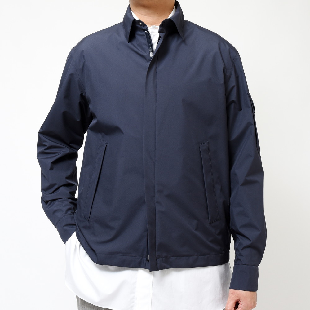 HERNO(ヘルノ)Laminarラミナーラインのハリントンジャケットタイプのジップブルゾンは、お馴染み2レイヤー構造のしなやかゴアテックスを採用しています。