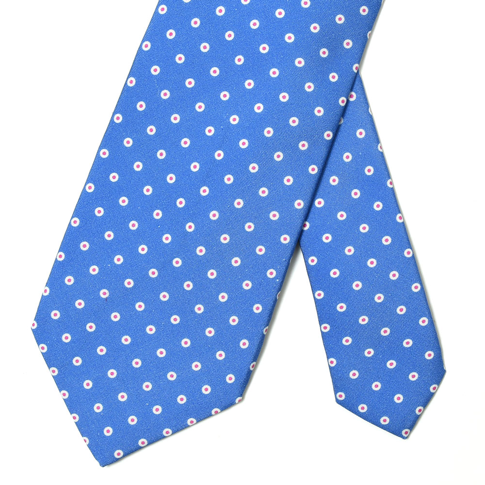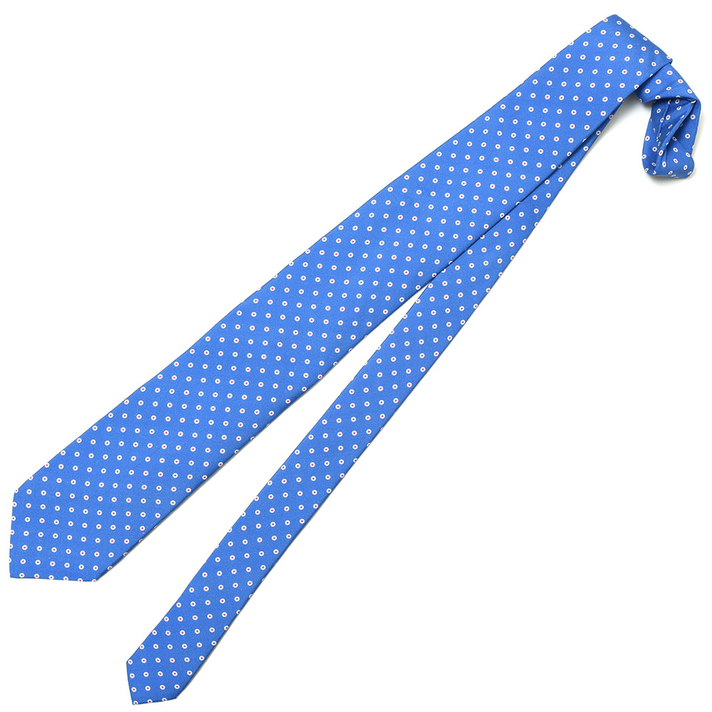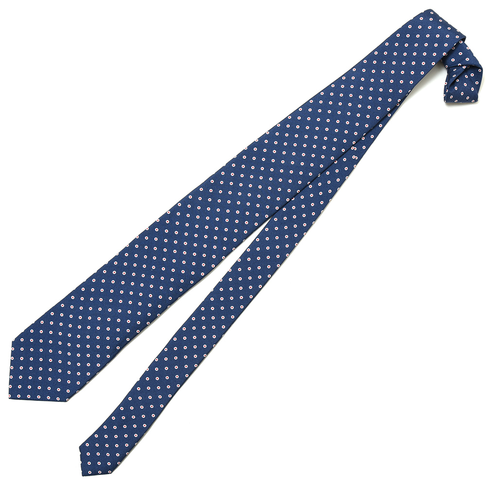 まぁそういったことを変に深読みするよりも、ネクタイ自体の仕上がりを純粋に楽しんで頂く方が健全ですね。フランスらしい華やかな色遣い、特にグラウンドカラーのブルーやネイビーの深みと華やかさが絶妙です。