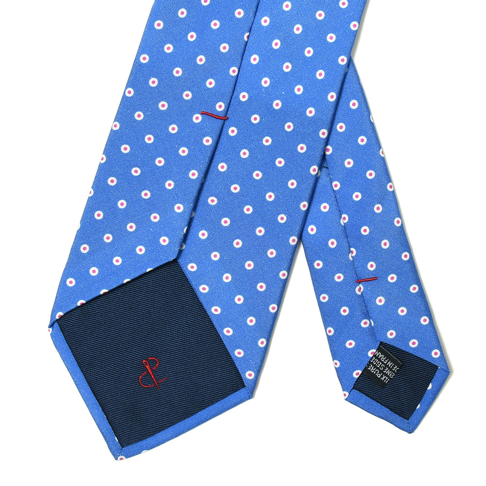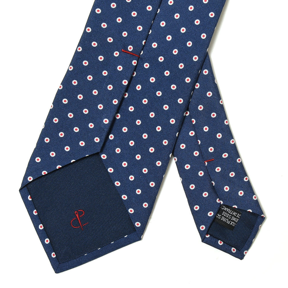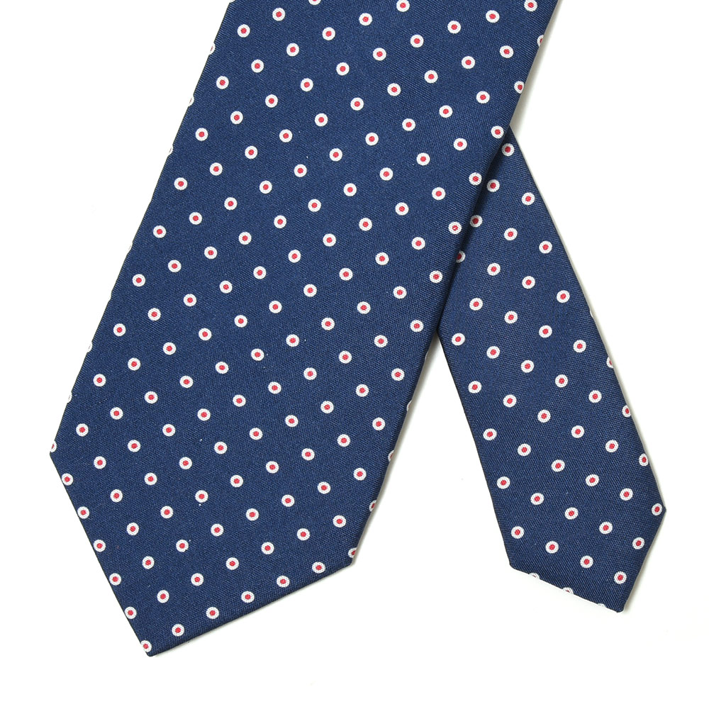 一見ドットのネクタイかと思いきや、なんか丸の中にも点があるぞと“的”を配列した一本。