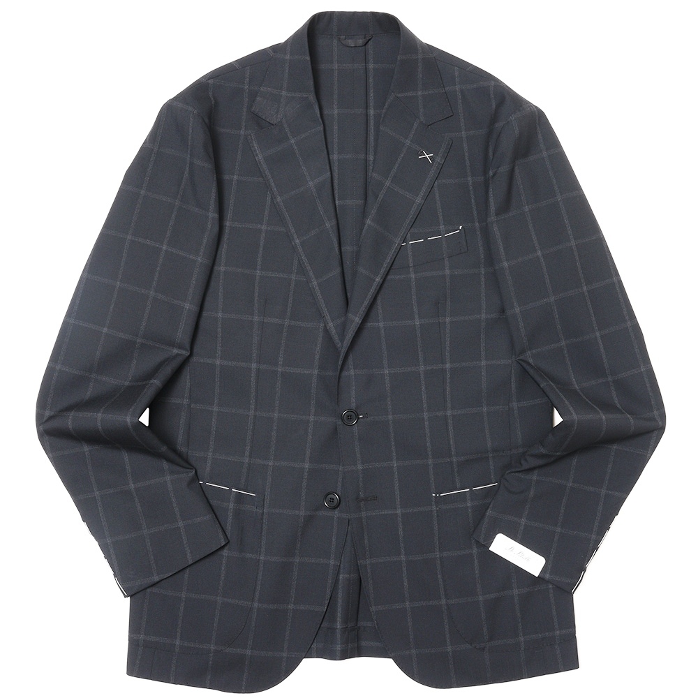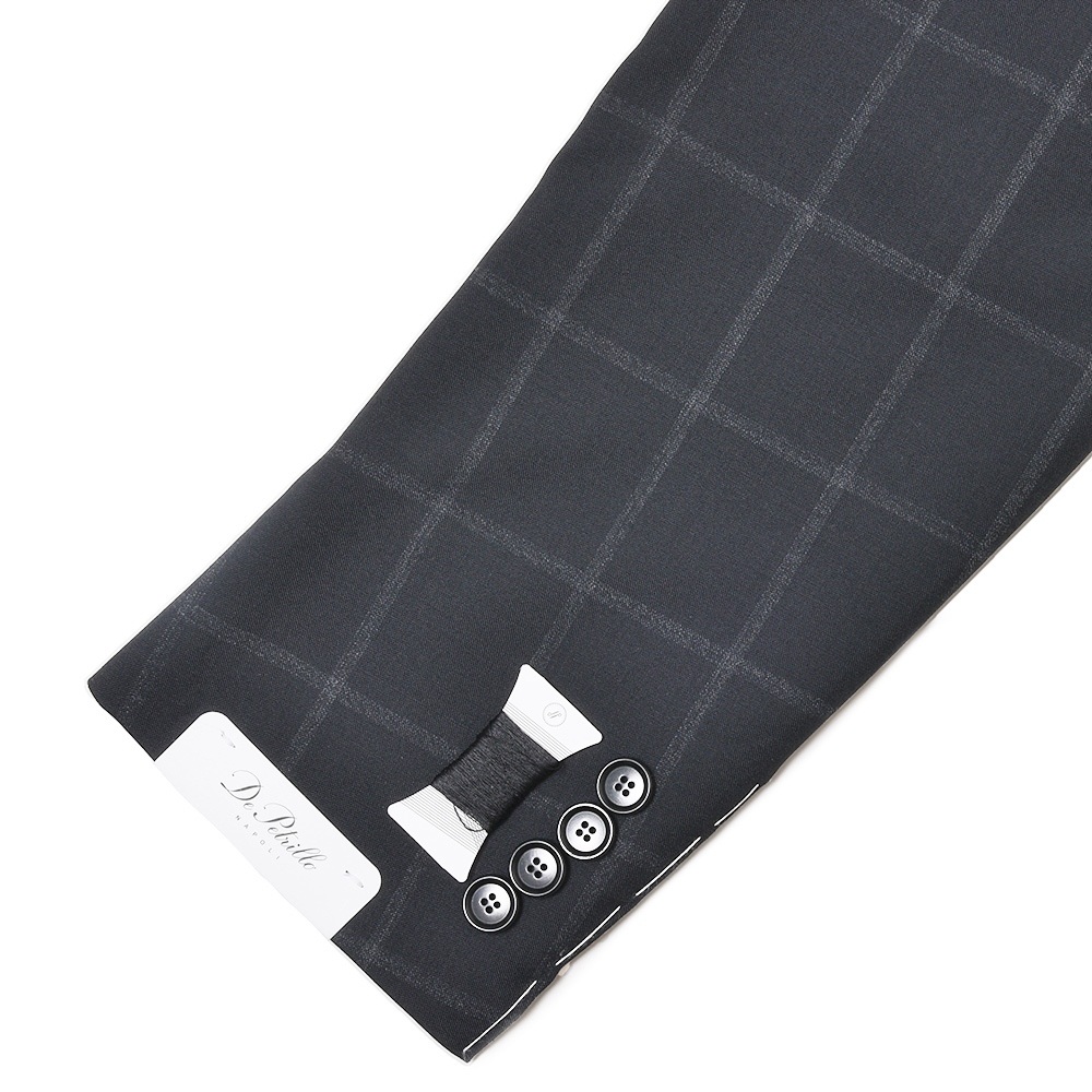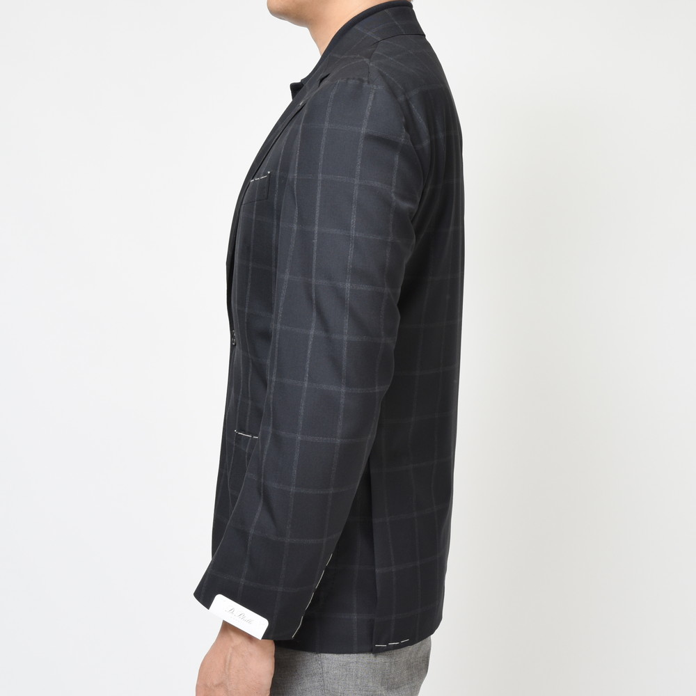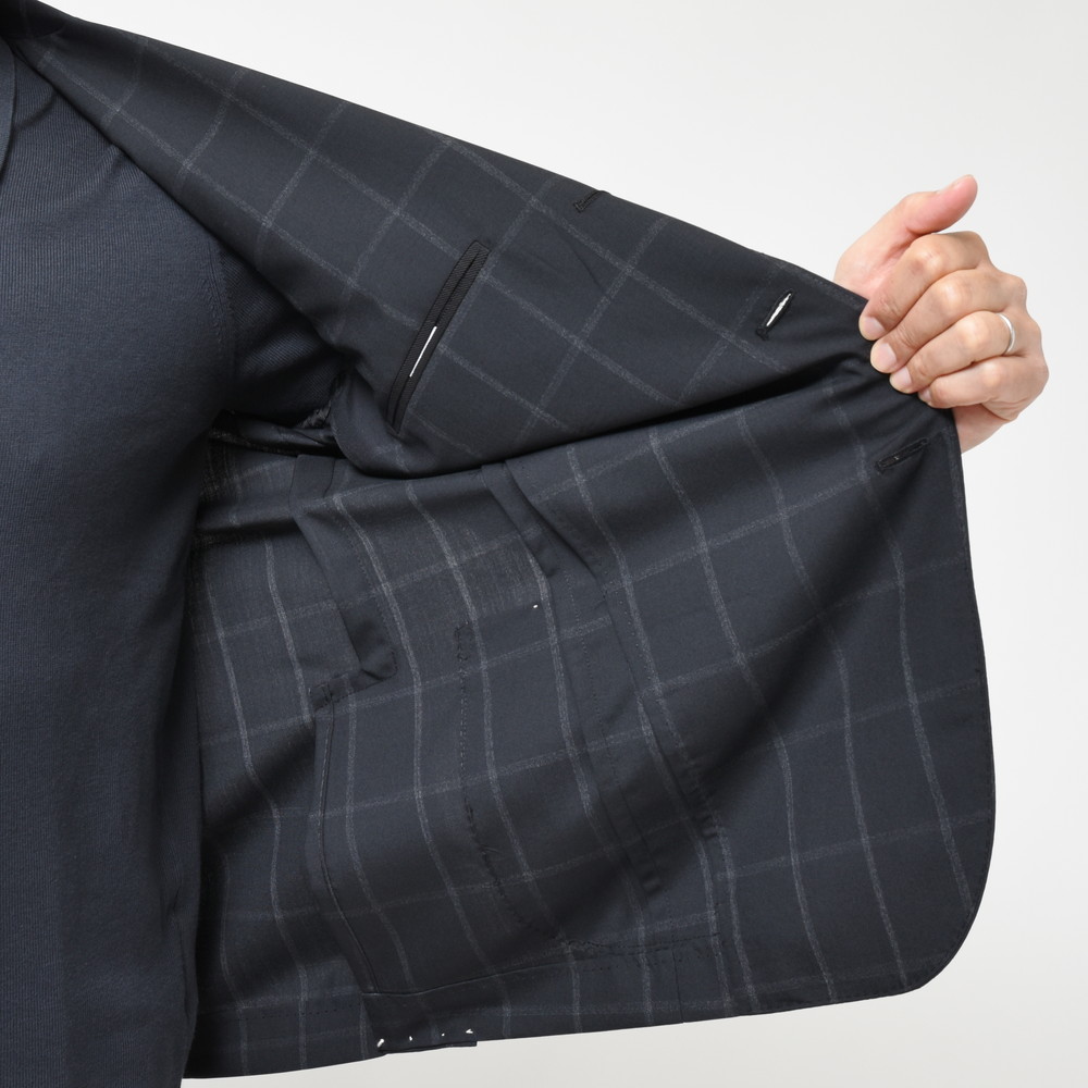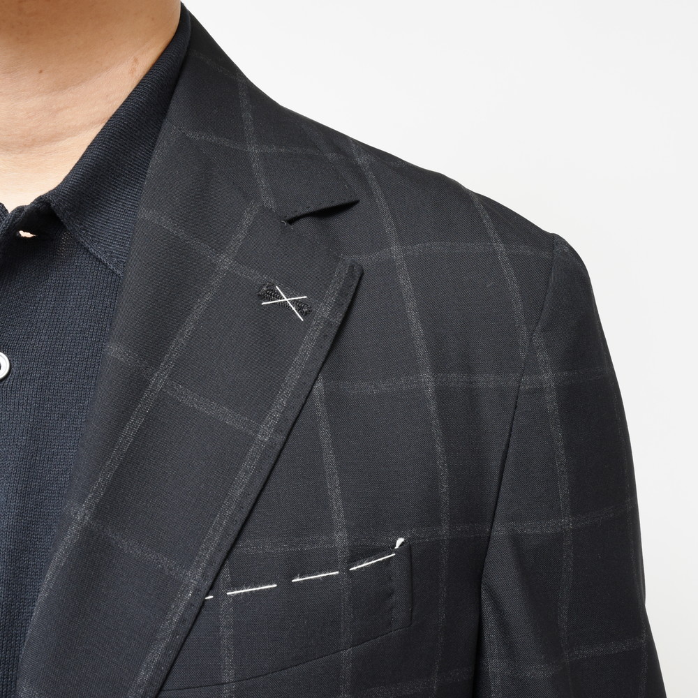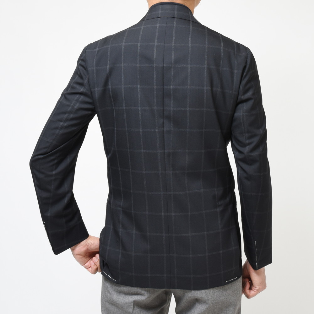 生地はブラックのウールトロピカルでかすれるようなウインドーペーンを配したシャープなファブリック。モダンナポレターナの旗手といえるブランドだけに、非常にクールな生地セレクションだと思います。
