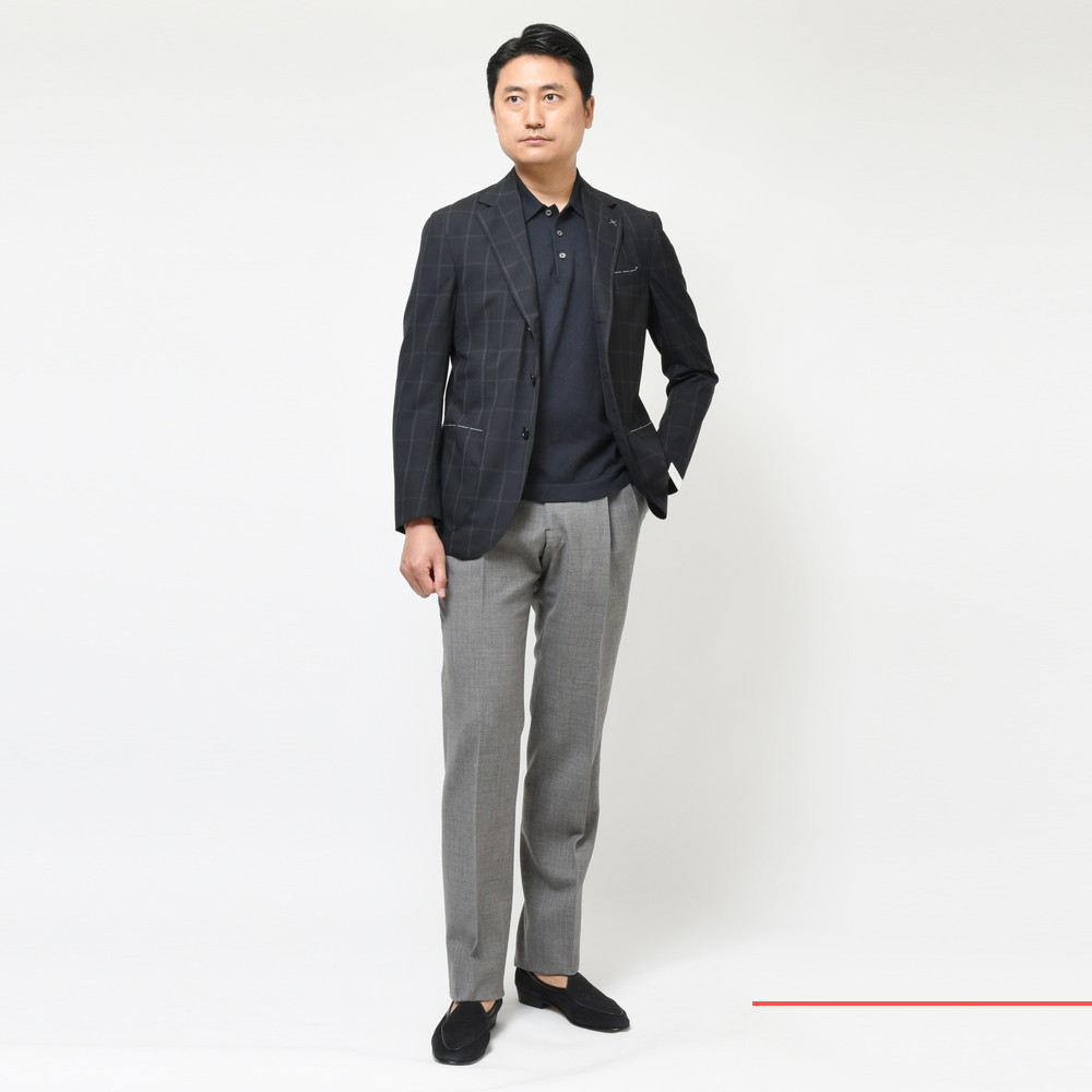ブラックのソリッドジャケットよりも実はチャレンジしやすいかもしれない一着。De Petrillo謹製のライトな着心地は本当に流石でして、それにプラスしてこの配色の妙はセンスの良さが迸っています。