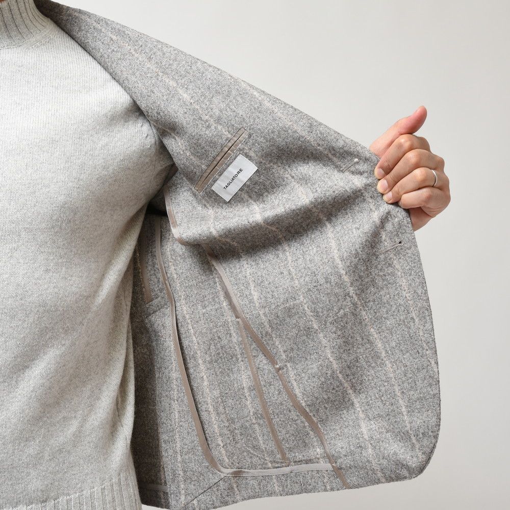TAGLIATOREではアルパカを贅沢に使用することでタッチを滑らかに、ウェイト的にも軽やかに織り上げられた特選生地を採用しています。