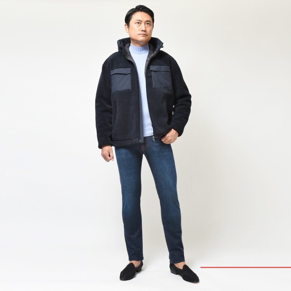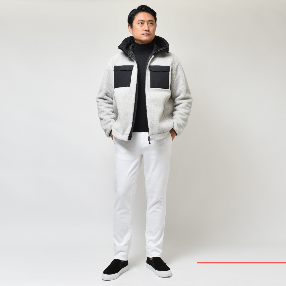 ボア系アイテムは着ると丸みが出るので可愛くなりがちですが、こちらはシャープさがしっかりキープされているので大人の男性が着ても変にあざとくならず、男らしくスマートなスタイルを楽しむことが出来ると思います