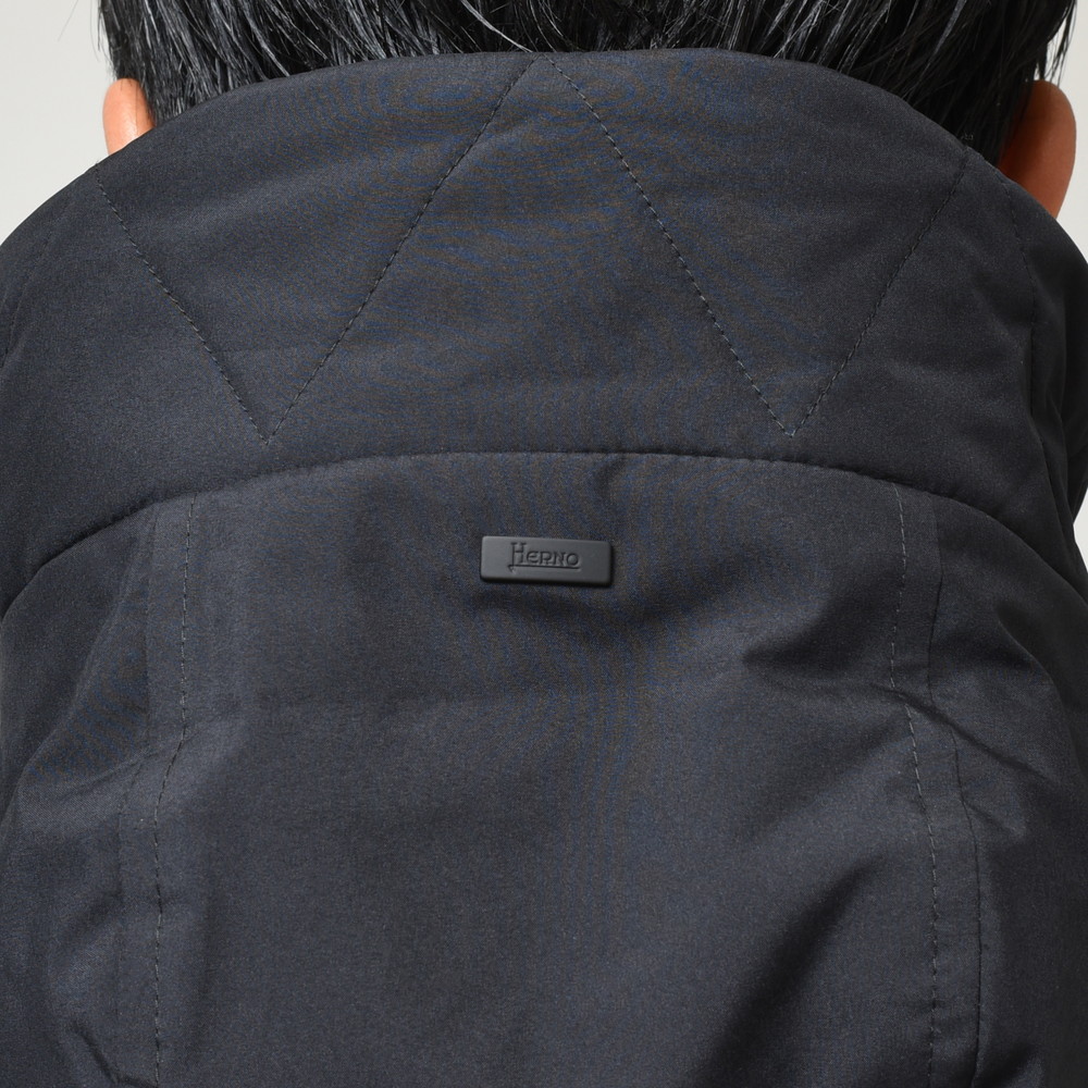 しかしそこはHERNO、アーバンなスタイルに合わせられるようシャープさが意識されていて、デザインはスマートなCPOタイプを採用。ゴアテックス素材のフードやパッチポケットをセットすることで素材感を巧みに切り替え、温かみだけではない奥深い魅力を表現しています。