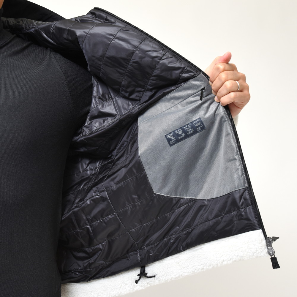 そして、ボア素材の裏面にメンブレンをボンディングしており、風や水を通さない撥水性も加味しています。