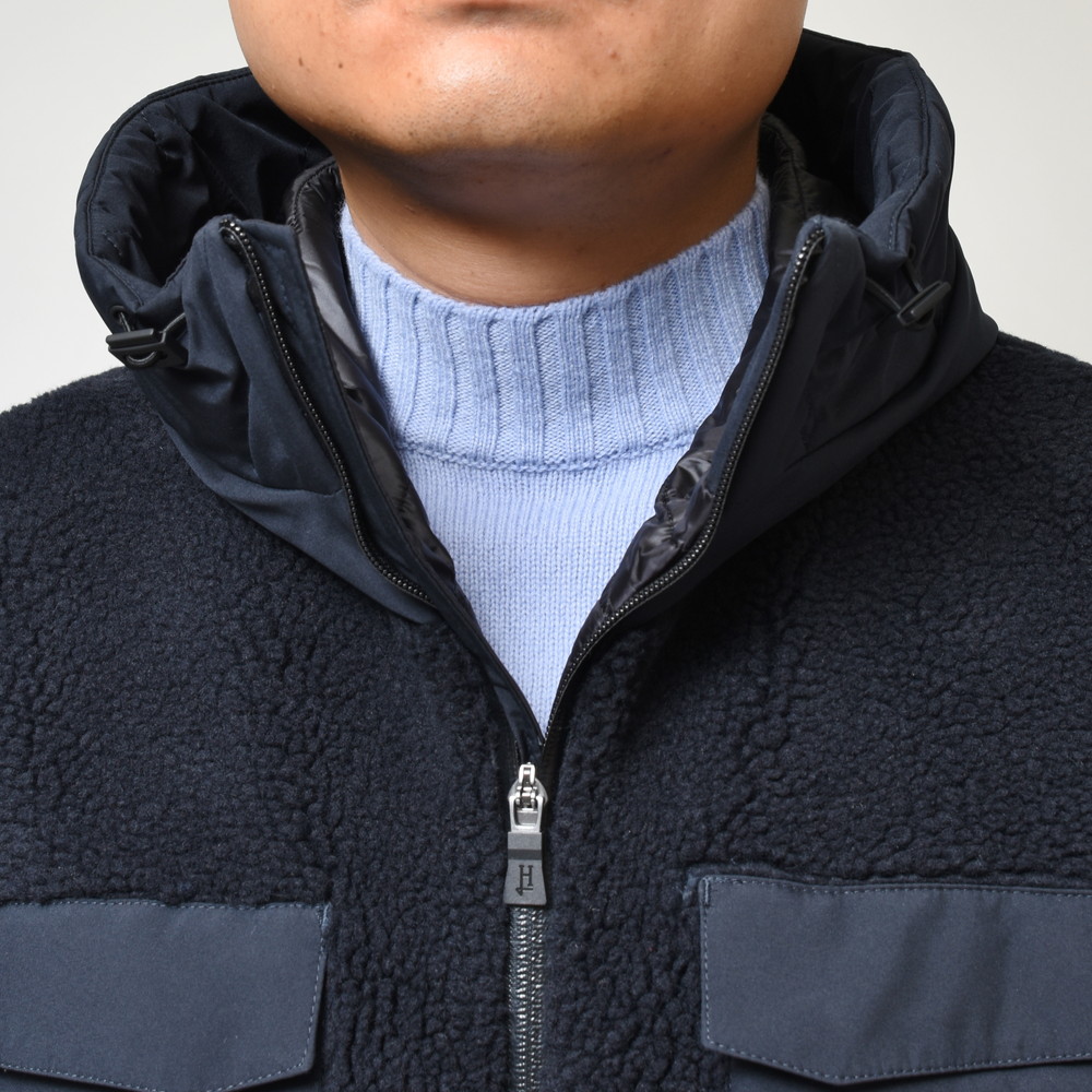 HERNO(ヘルノ)Laminarラミナーの新提案はボアファブリックを用いたCPOタイプのフーディーブルゾンです。