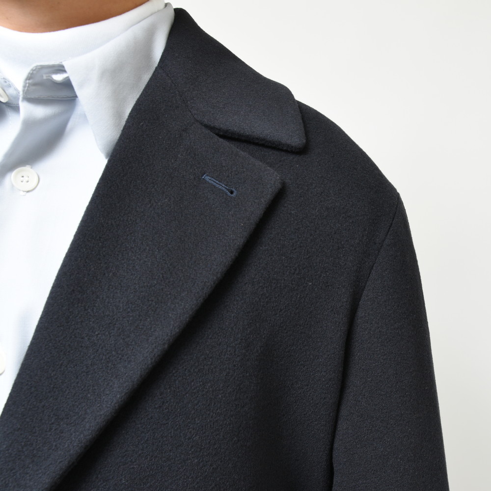 なぜgujiでカシミアをオーダーするかといいますと、まずこのOSTUNIというモデルの完成度が非常に高いからでして、このオンオフ兼用できる現代的でありながらクラシックにも着られるコートをより良い素材でご覧いただきたいという思いからなんです。