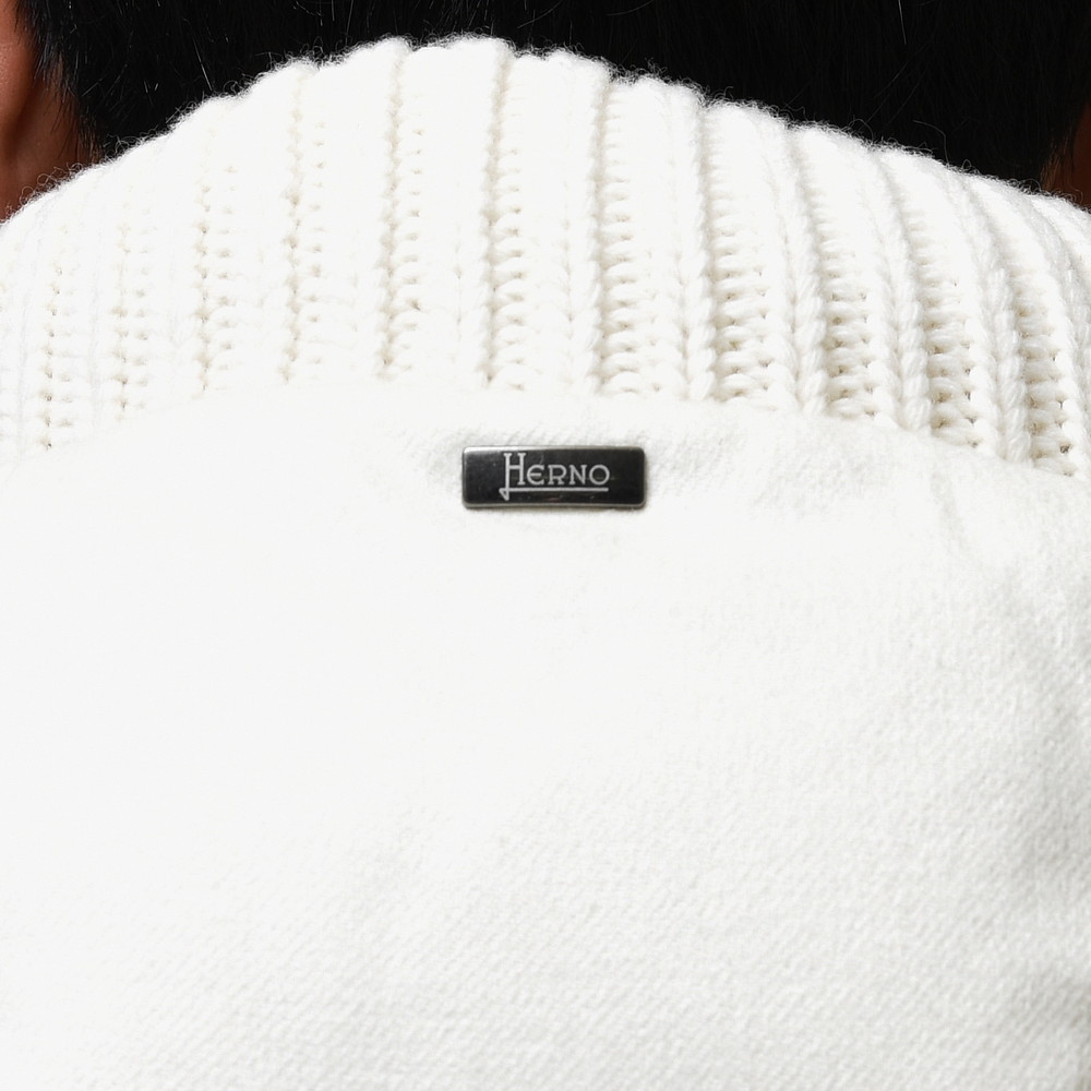 この生地を用いるということはどう考えてもエレガントな方向にデザインされるように思いますが、そこをあえてカジュアルに、ニットを用いてまろやかさをプラスするところに今までのHERNOにはなかった優れた先進性を感じます。